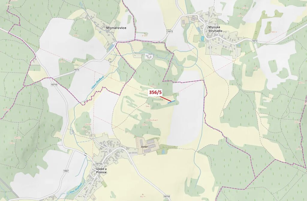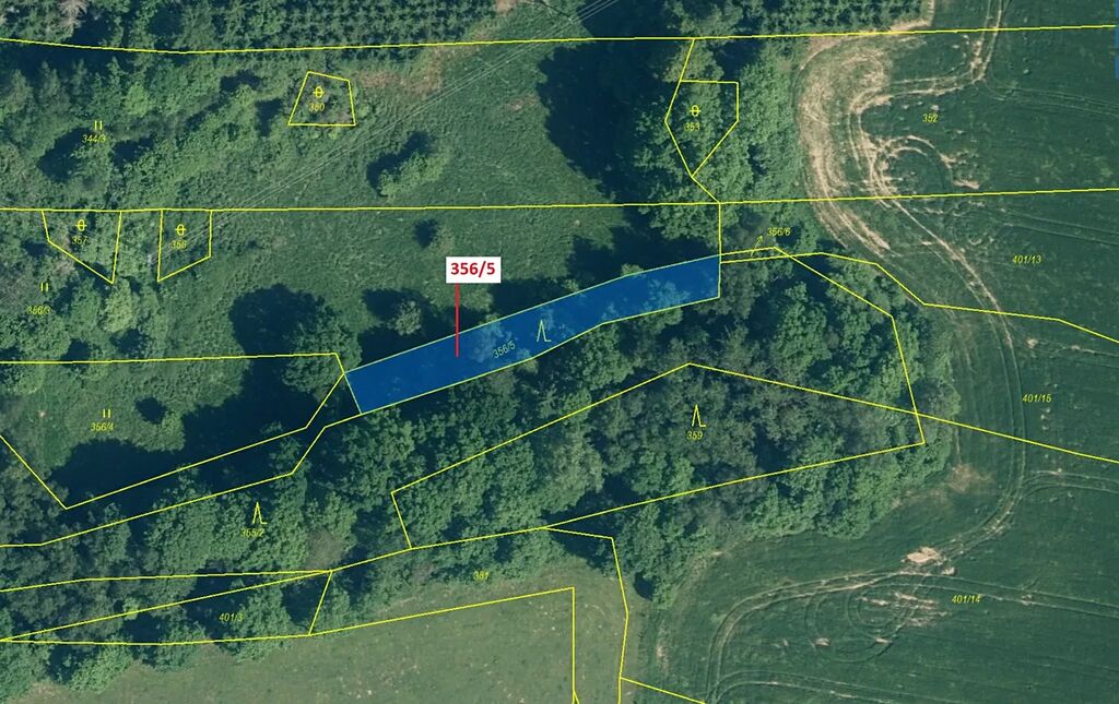 Lesní pozemek o výměře 613 m2, parcelní číslo 356/5, podíl 1/1, katastrální území Újezd u Plánice, obec Újezd u Plánice, obec s rozšířenou působností Klatovy, okres Klatovy, Plzeňský kraj.