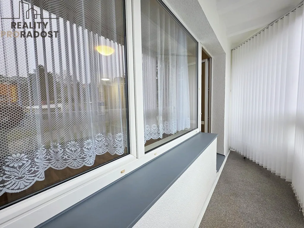 V obytné místnosti jsou nové podlahové krytiny a nová kuchyňská linka. Na pokoj navazuje prostorný zasklený balkon. Dále je byt vybavený ledničkou. Sklepní kóje se nachází v suterénu domu.