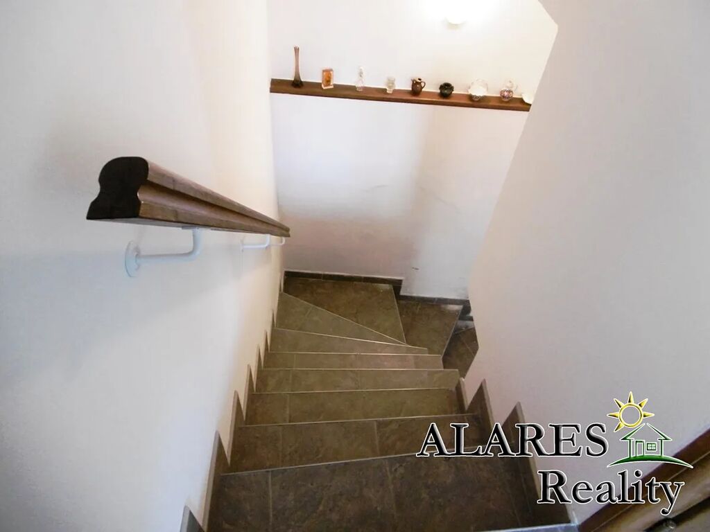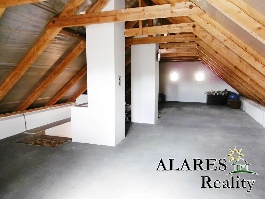 Bývalá hospodářská budova předělaná na technickou místnost, komoru, dílnu, dvojgaráž (el. vrata na dálkové ovládání), sklípek, a nad tím vším opět prostorná půda.