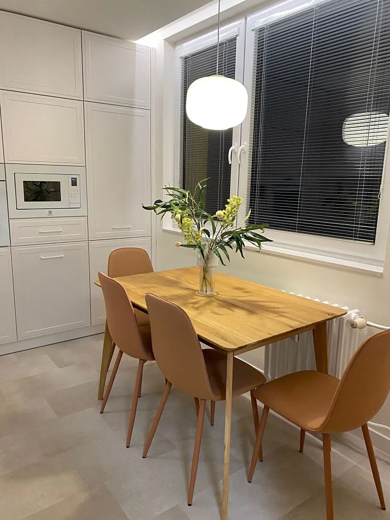 Nabízíme dlouhodobý pronájem luxusního bytu po celkové velmi vydařené rekonstrukci s dispozicí 2+1 v žádané lokalitě Uherského Brodu - části Šaripova. Jedná se o komfortní bydlení s dobrou dostupností do centra města s krásným výhledem na okolí. Celý interiér navrhla bytová designérka, která splnila funkčnost, praktičnost a styl celého bytu. Dispozičně se jedná o vstupní chodbu s klimatizací, odkládacím prostorem a šatnou. Kuchyň je oddělena posuvnými dveřmi s vitrážovou výplní, je zde nová kuchyňská linka s mnoha úložnými prostory a vestavěnými spotřebiči - lednice s mrazákem, myčka, pračka, indukční varná deska, horkovzdušná a mikrovlnná trouba a jídelní stůl se čtyřmi židlemi. Obývací pokoj je zařízen rozkládací sedací soupravou se vstupem na lodžii. Samostatná ložnice je orientovaná na jihozápad. V koupelně se nachází vana se zástěnou, kvalitní umyvadlo se skříňkou, žebříkový radiátor, skříňka s úložným prostorem a toaleta. Podlahy jsou řešeny novými dřevěnými parkety a dlažbou. K bytu náleží sklepní kóje umístěná v přízemí bytového domu. Parkování je možné přímo u domu. Nájem činí 16.500,-Kč/měsíčně + 3.500,-Kč/měsíčně energie + elektřina. Byt je ihned k dispozicí.