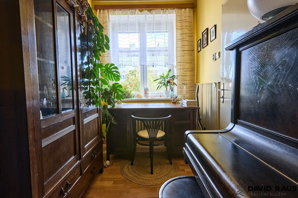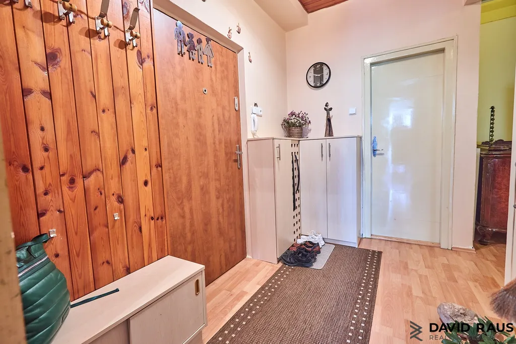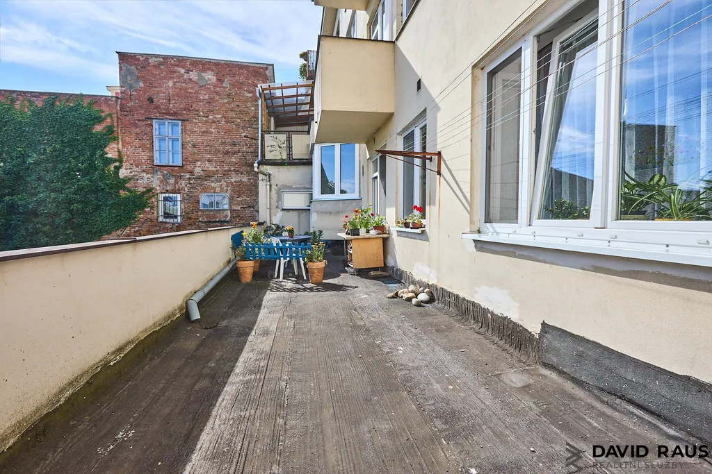 Představte si, že vejdete do bytu, kde na vás dýchne klid, prostor a útulnost. Hlavní vchod vás přivede do předsíně (5,45 m²), která je jako tichý spojovací bod mezi jednotlivými částmi bytu. Odtud plynule vstoupíte do obývacího pokoje - haly (18 m²), místa, kde se odehrávají každodenní chvíle s rodinou nebo večerní relax u filmu. Po levé straně předsíně se nachází samostatné WC (1,50m²), prakticky oddělené od ostatních místností. Po pravé straně vejdete do kuchyně (13,75 m²), která je srdcem tohoto domova – s dostatkem místa pro vaření i stolování. Odtud můžete rovnou vyjít na prostornou terasu (38,56 m²), která přímo vybízí k ranní kávě, večerní sklence vína nebo víkendovým snídaním pod širým nebem. Z kuchyně vede vstup do menšího pokoje ( 9,8 m²)– momentálně slouží jako hudební kout s pianem a sedačkou, ale snadno si ho představíte třeba jako dětský pokoj, pracovnu nebo ateliér. Celý byt je příjemně propojen, prakticky rozvržen a působí vzdušně.Z obývacího pokoje se dále dostanete do prostorné ložnice (18,35 m²), která nabízí dostatek místa pro klidný spánek i úložný prostor. Nechybí ani koupelna s vanou (4,95 m²) a samostatná komora (4,00 m²) – ideální třeba pro uskladnění sezónních věcí nebo domácích potřeb.