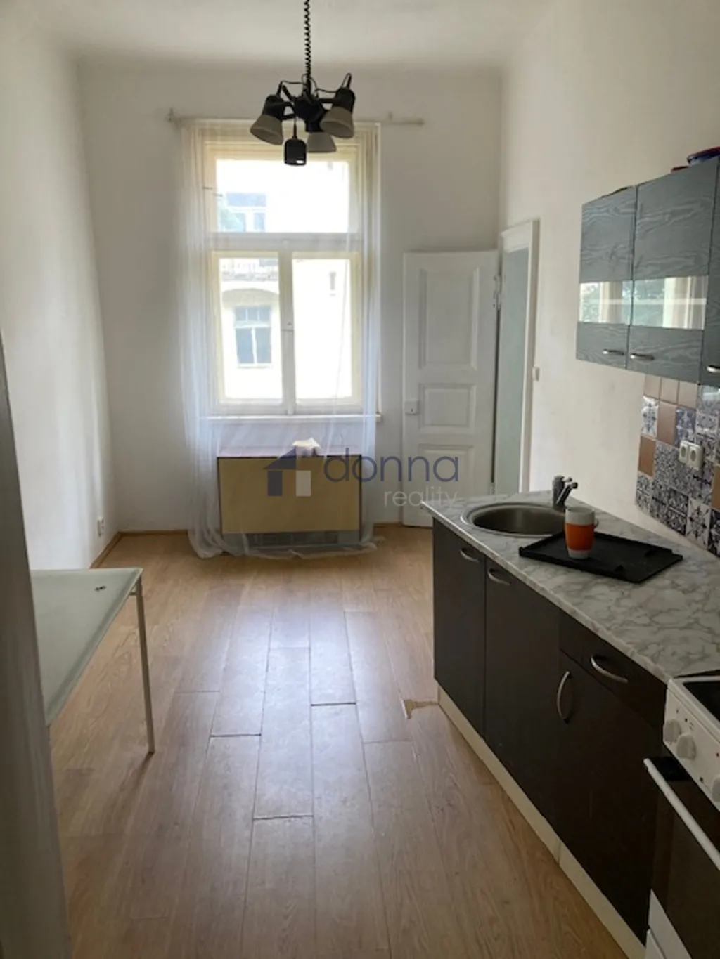 Obývací pokoj má okna orientovaná na západ do ulice, kuchyň pak do tichého dvora. Byt se pronajímá bez nábytku.