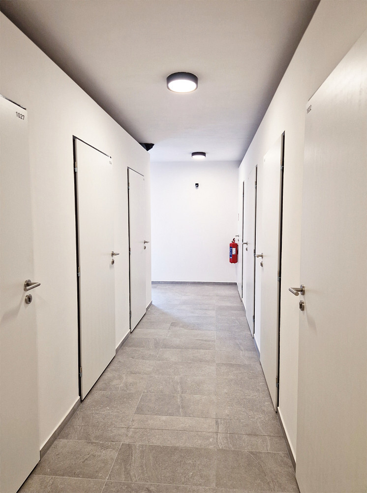 Prostorný interiér bytu je navržen s důrazem na funkčnost a komfort. K bytu náleží terasa, která přechází v předzahrádku o rozloze 120 m², přístupnou z obývacího pokoje a obou ložnic, ideální pro relaxaci. K bytu náleží elektrifikovaný sklep o velikosti 3 m², který poskytuje dodatečný úložný prostor. K bytu je dispozici jsou dvě výhradní parkovací místa přímo u vstupu do bytu, což zajišťuje pohodlné parkování.