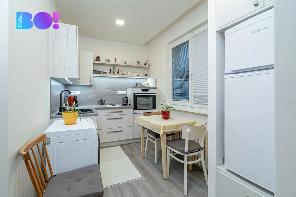 Byt prošel rekonstrukcí v roce 2020, v rámci které byla realizována výměna elektroinstalace, vodoinstalace, vybudována nová koupelna se sprchovým koutem, WC a umyvadlem. V chodbě jsou vybudované vestavné skříně, své místo má i pračka a sušička, kuchyňská linka byla zhotovena na míru s vestavěnými spotřebiči. V kuchyni a chodbě je nová plovoucí podlaha, v koupelně dlažba a v pokoji velmi zachovalé dřevěné parkety. Topení a ohřev vody je z dálkového zdroje. Byt je orientován na jižní světovou stranu, byt se nachází v přízemí panelového domu a náleží k němu i sklepní kóje.