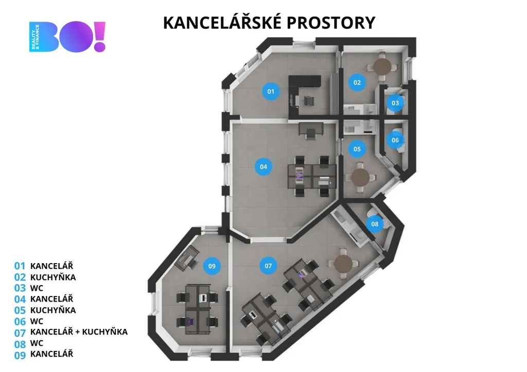Prostory jsou světlé, vzdušné a díky čerstvé rekonstrukci působí opravdu příjemně. Výhodou je i možnost doladění či úprav dle toho, co Vaše podnikání potřebuje, od rozdělení místností až po specifické technické požadavky.