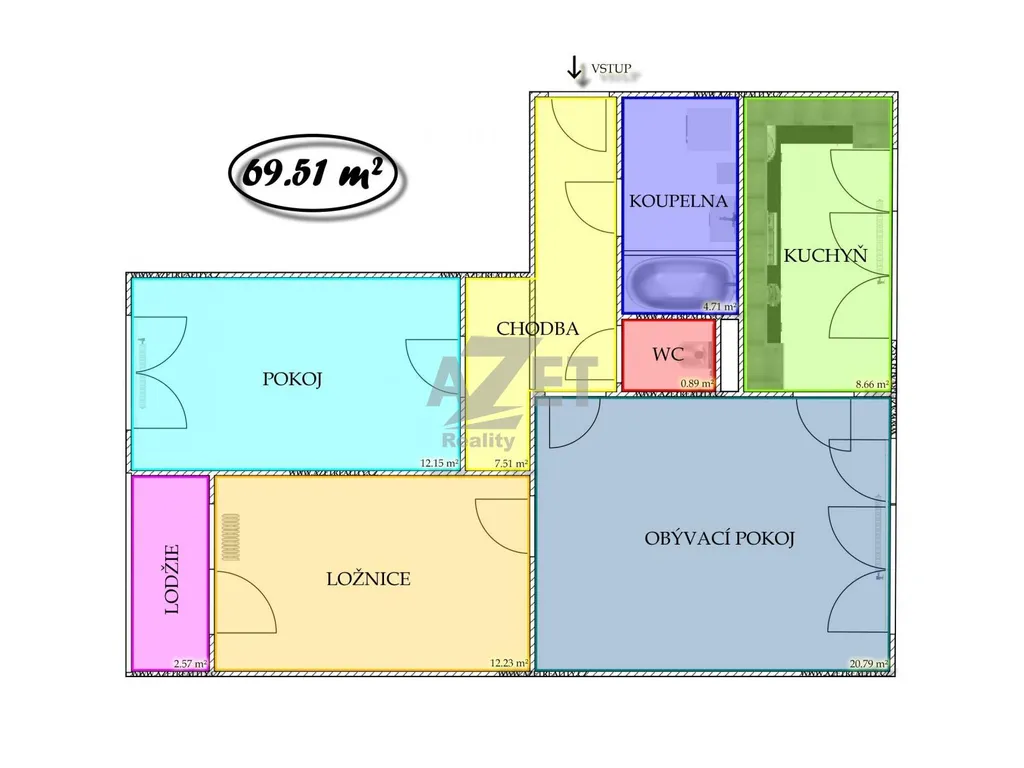 8 - Lodžie - 2,56 m2 o rozměrech 2,46 x 1,04 m