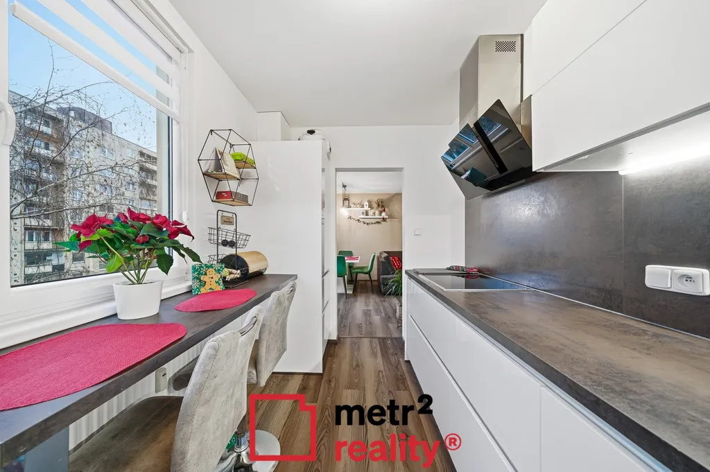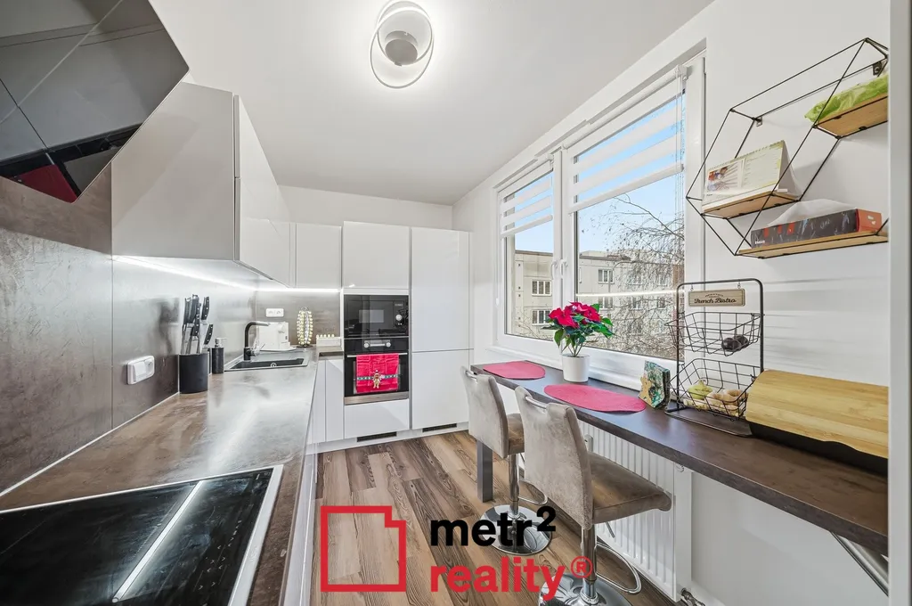 Ve výhradním zastoupení majitelů si Vám dovolujeme nabídnout prodej velmi pěkného, kompletně a nadstandardně zrekonstruovaného bytu o dispozici 3+1 v Olomouci na ulici Družební. Jednotka je v osobním vlastnictví a je umístěna ve 2. patře bytového domu bez výtahu. Čistá podlahová plocha bytu je 67,30 m2 a patří k němu lodžie o výměře 3,10 m2 a sklepní kóje v suterénu domu o výměře 1,80 m2. Orientace bytu je slunná a to na výhodní a západní stranu. Komplexní rekonstrukce bytu proběhla v roce 2021 a zahrnovala změnu dispozice, v rámci které nově vznikla v bytě technická místnost ve které mají majitelé umístěnou pračku se sušičkou a úklidové prostředky. Samozřejmostí bylo vyzdění jádra, nové rozvody elektřiny, vody i odpadů, nové obložení koupelny i WC včetně sanity, výměna původních interiérových dveří za nové, včetně obložkových zárubní, nové vinylové podlahy a designová kuchyňská linka na míru včetně vestavěných spotřebičů. Nedílnou součástí rekonstrukce byly omítky a sádrokartonové podhledy. Bytový dům prošel taktéž částečnou revitalizací. K přednostem jednotky patří dva neprůchozí pokoje, koupelna a WC zvlášť a lodžie s výhledem do zeleně. V bezprostřední blízkosti domu se nachází veškerá občanská vybavenost, zastávka MDH a to jak autobusu, tak tramvaje, obchody, školy i školky. Bližší informace v RK. Výhodou je umístění bytové jednotky ve vnitrobloku, což zajišťuje maximální soukromí, absenci hlavní rušné cesty a spoustu zeleně. V případě zájmu o prohlídku nás neváhejte kontaktovat a rádi Vás bytem provedeme.