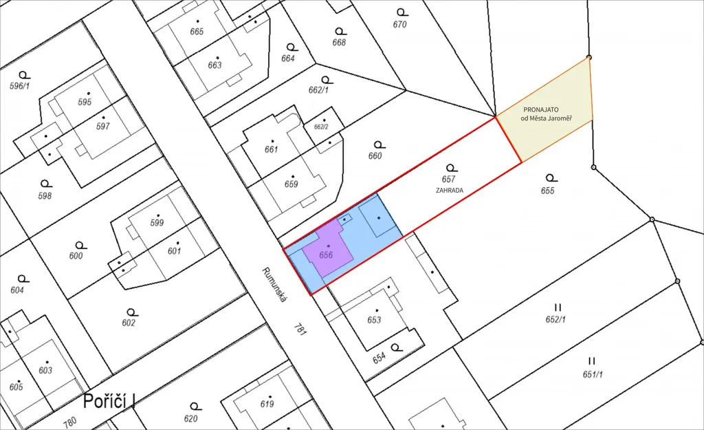 Dům ve vilové čtvrti v Rumunské ulici má v blízkosti veškerou občanskou vybavenost, a ze zahrady nabízí výhled na louky v okolí. Poloha domu je ideální, neboť se nachází v klidné lokalitě, ale i přes to máte na dosah školu, školku, obchody, úřady, supermarkety, lékaře, kulturu i hřiště. Milovníci přírody zde naleznou start pro své aktivity. Parkovat můžete na ulici před domem.
