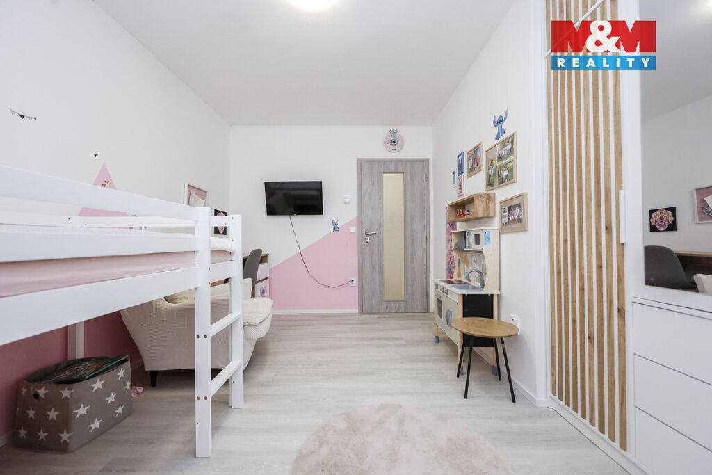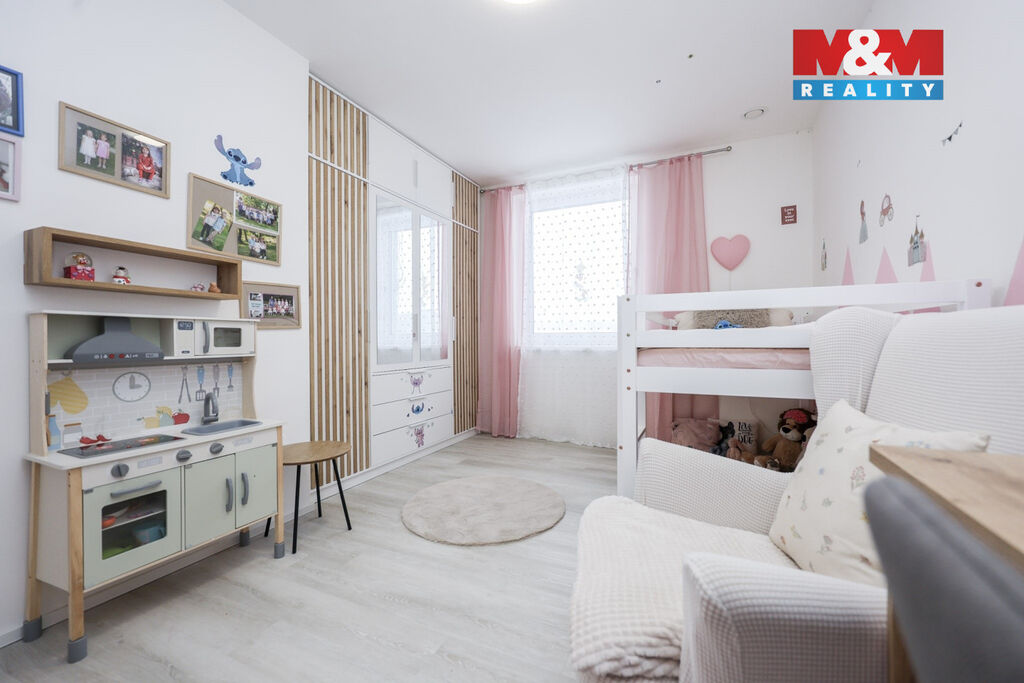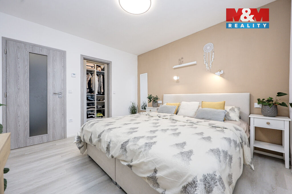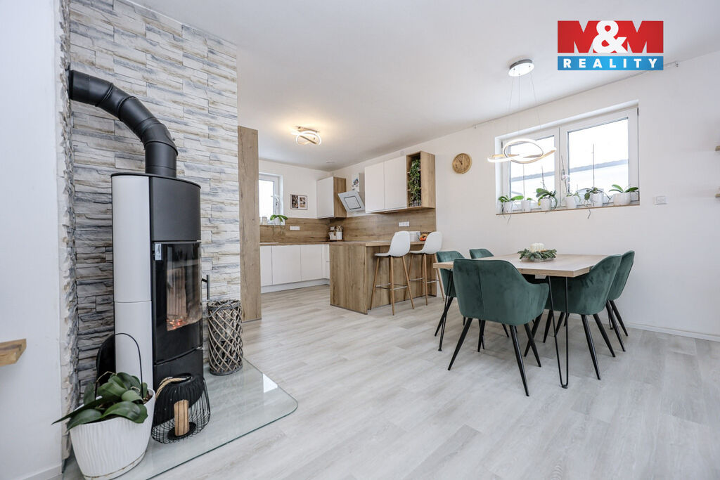 Dominantou domu je prostorný obývací pokoj s krbovými kamny, propojený s kuchyňským koutem a přímým vstupem na zahradu. Součástí kuchyně je také praktická spíž. Dále dům nabízí 2 dětské pokoje, ložnici se šatnou, prostornou koupelnu s vanou i sprchovým koutem, dvě toalety a technickou místnost se vstupem na zahradu. Na zahradě se nachází pergola, ideální pro posezení, grilování a relax.
