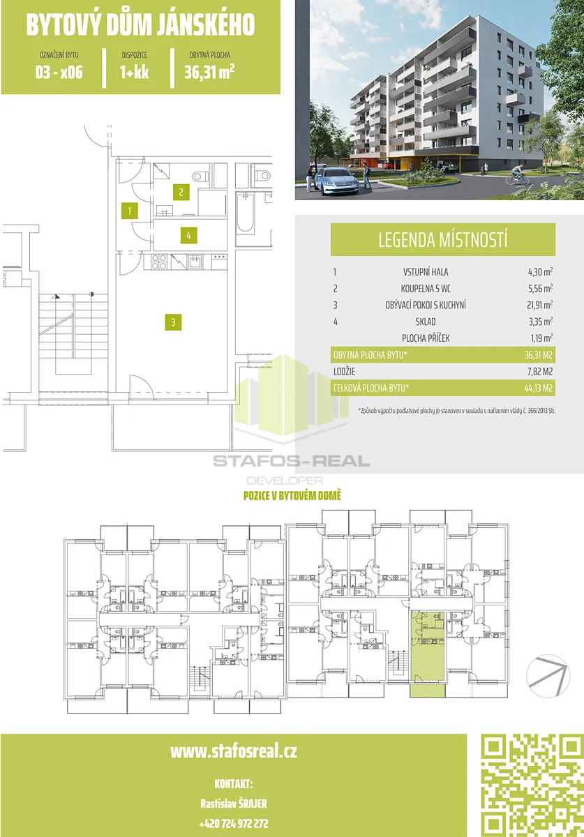 Začněte Vaší novou životní kapitolu bydlení a vychutnejte si radost z bydlení v zbrusu novém bytě. Prověřujeme evidenci exekucí, insolvencí a dluhů na zdravotním pojištění našich potenciálních nájemníků. Pro lepší představu o tomto bydlení vám doporučujeme shlédnout virtuální prohlídku, která vám také poskytne možnost změřit jakýkoliv rozměr tohoto bytu. Volné od listopadu/prosince 2025. Kompletní nabídku bytů v domě najdete na našich stránkách STAFOS-REAL.