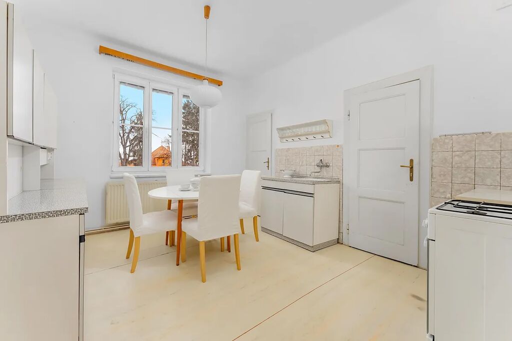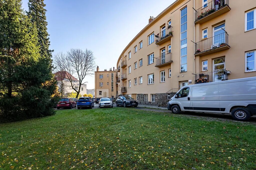 Byt se nachází v prvorepublikové budově navržené slavným brněnským architektem Jindřichem Kumpoštem a postavené v roce 1928. Vyniká tak mimořádnou atmosférou s nádechem první republiky, kterou umocňuje zahrada patřící k bytovému domu v sousedství slavných vil Masarykovy čtvrti. Na zahradě najdete dětské hřiště, ohniště, vzrostlé stromy a především dokonalý klid. K bytu náleží i jedno parkovací stání, což je v lokalitě na Žlutém kopci k nezaplacení.
