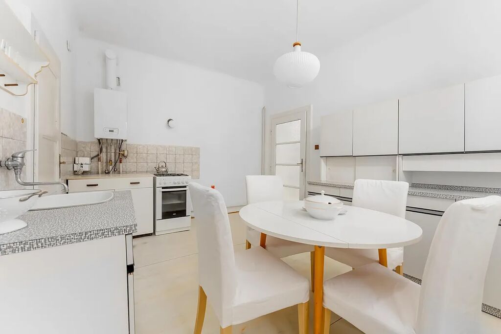 - v bytě je nový plynový kotel s nově vyvložkovaným komínem (3. 2025), ohřívá vodu a vytápí byt