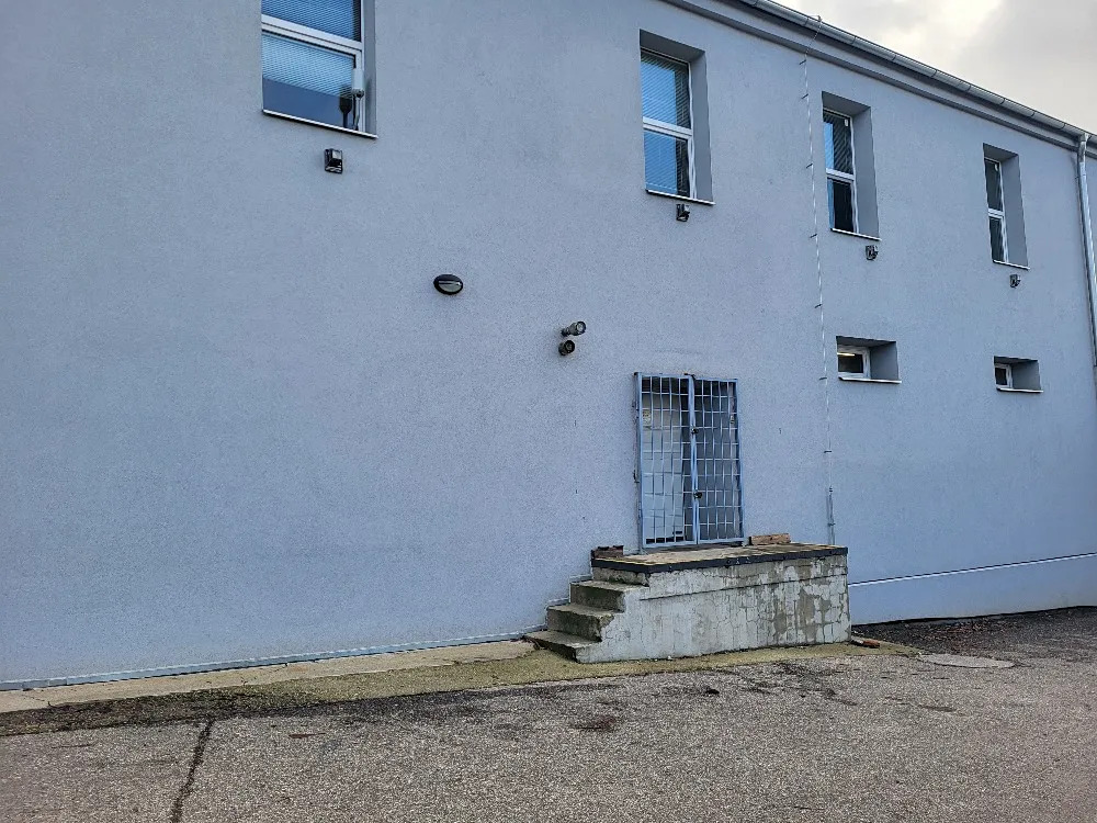 Budova je zateplena, v roce 2017 proběhla rekonstrukce. Sklad je přístupný v zadní části přes menší nákladovou rampu a automatická vrata. Vstup má velikost 1,40 m(š) a 2,00m (v). V přední částí je vstup přes dvoukřídlé plastové dveře a šířce 1,35 m. Před těmito dveřmi je malá rampa o výšce 50 cm. Sklad má celkem 5 malých větracích oken – v zadní části skladu jsou 2 a v přední části skladu jsou 3 malá okna. Výška stropu je 2,95 m. Podlaha – dlažba.