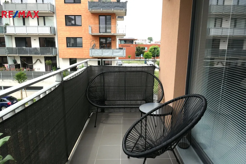 Byt sestává z předsíně, prostorného obývacího pokoje s odděleným kuchyňským koutem, ložnice, koupelny včetně WC, komory a z obou místností přístupného balkónu; k bytu náleží kóje (cca 2,5 m2), umístěná na témže podlaží a parkovací místo na přilehlém parkovišti.