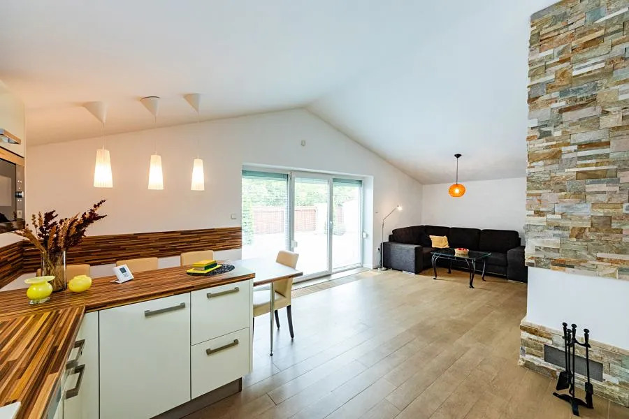 Dům je dispozičně řešen jako 3+kk, o celkové podlahové ploše 75 m2.