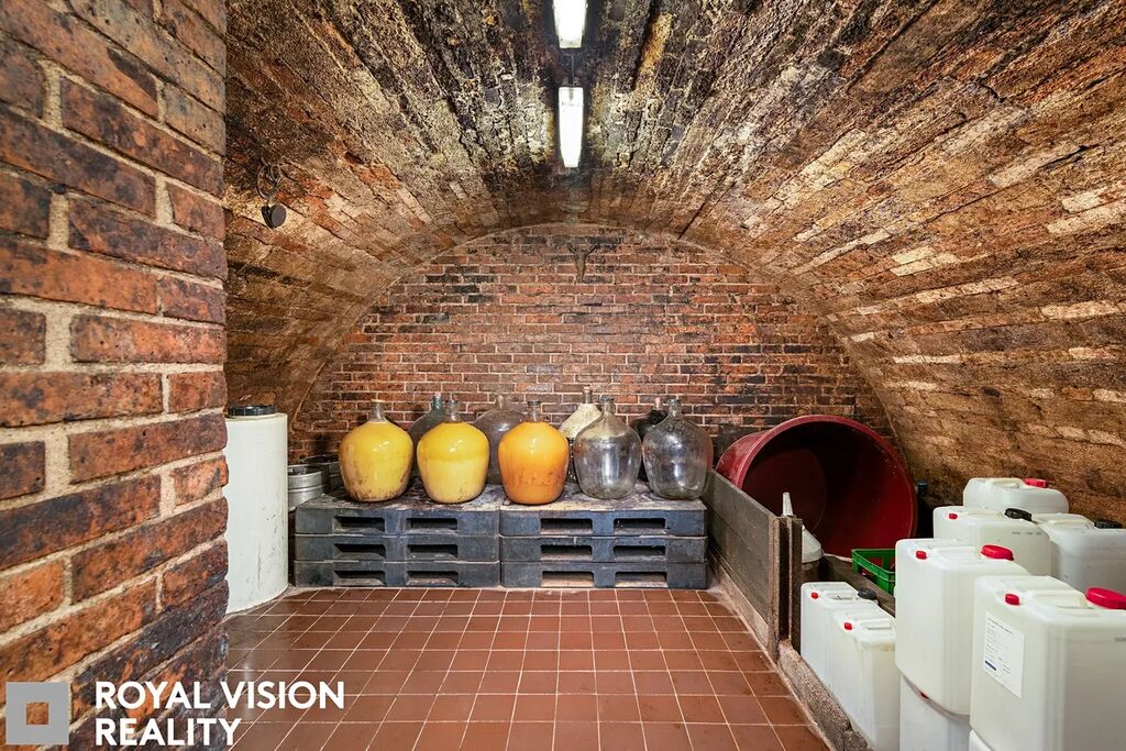 Budova je zděná, napojena na elektřinu, obecní vodovod i kanalizaci, a je možné připojit i plynovou přípojku. V přízemí se nachází zádveří, hostinská místnost, lisovna, samostatné WC celkem 45m2, klenutý vinný sklep 52,5 m2 (výška stropu 2,35m s vlastním odvodem odpadu.