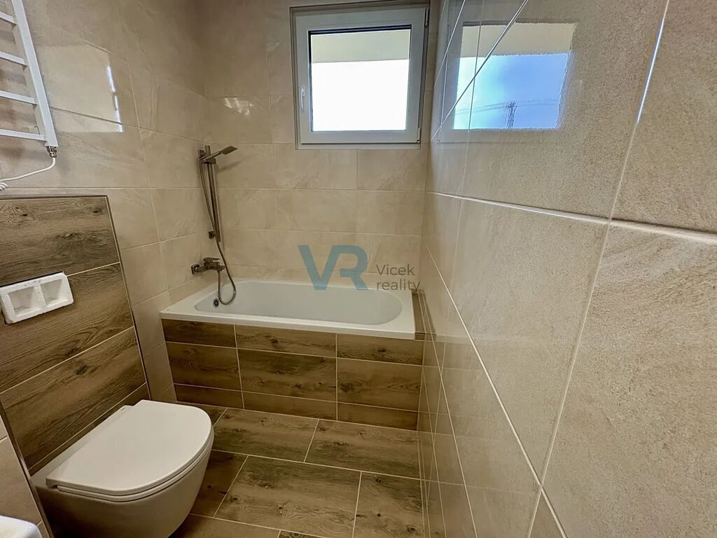 Vpravo halou projdeme do koupelny, disponující vanou a WC.