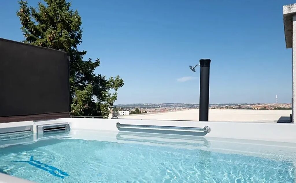 Exkluzivně nabízíme luxusní byt s balkónem s uchvatnými výhledy na Prahu v prestižním projektu se střešním bazénem na jednom s nejkrásnĕjších míst v Praze ve vilové čtvrtì Dívčí Hrady na pražském Smíchovĕ.Byt je vybaven luxusní kuchyñskou linkou s vestavënými spotřebiči AEG ( horkovzdušná trouba,mikrovlnná trouba,myčka nádobí ,lednice s mrazákem atd ).Dále je byt částečnĕ zařízen designovým nábytkem viz fotografie,pračkou.V bytĕ je technickà místnost s vlastním kotlem a místnost sloužící jako prádelna s pračkou.Podlahová krytina nové dubové podlahy a velkoformátové dlažby.Dále je v celém bytĕ klimatizace, videotelefon.Dále k bytu patří velký sklep a parkovací stání.