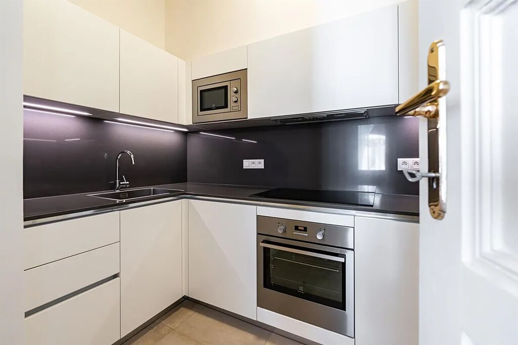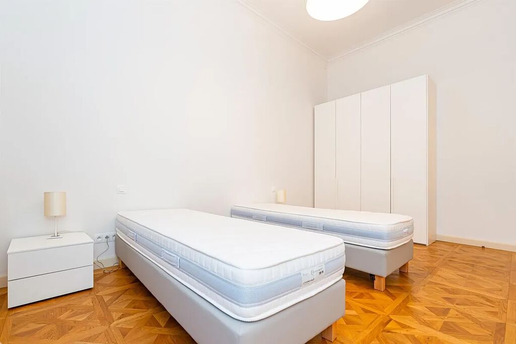 Reprezentativní zařízený byt 3+1 ( 2 ložnice, 2 koupelny), o velikosti 93 m2, je situovaný ve 2.NP rezidenční budovy s výtahem, která je kompletně zrekonstruovaná. Zachovaly se štukové stropy, dřevěná obložení a další prvky.