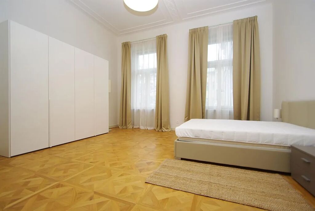 Prostorný zrekonstruovaný byt 2+1 (1 ložnice, 1 koupelna), o celkové obytné ploše 91,5 m2, je situován ve 2. patře s orientací do tichého vnitrobloku, historického domu s výtahem, v prestižní historické lokalitě Nové Město na Praze 1, ulice Bolzanova.