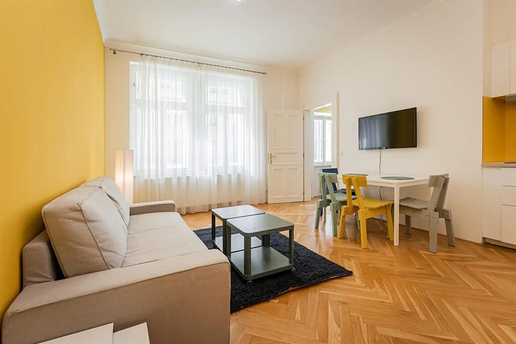 Zrekonstruovaný světlý byt 2+kk (1 ložnice, 1 koupelna) se šatnou, o celkové ploše 51,7 m2, je situován ve 2. patře zrekonstruované rezidenční budovy s výtahem v atraktivní lokalitě u parku Stromovka, na Praze 7 Bubeneč, ulice Šmeralova.