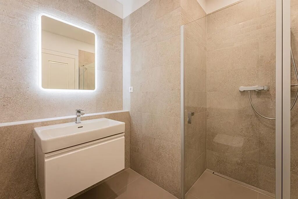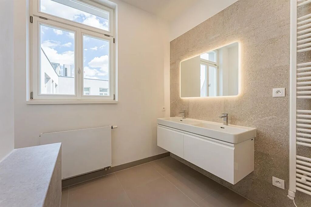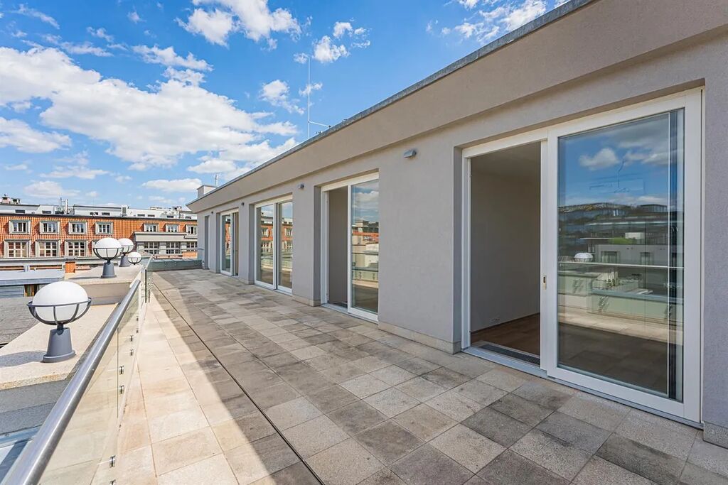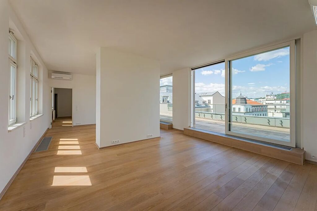 Reprezentativní prostorný byt 3+1 (2ložnice, 2 koupelny), s podlahovou plochou 117 m2 a s prostornou terasou 57 m2, která nabízí hezké výhledy. Byt je situovaný v posledním 6. patře kompletně zrekonstruovaného domu se zachovalými původními art deco prvky. Výtah jede přímo do bytu.