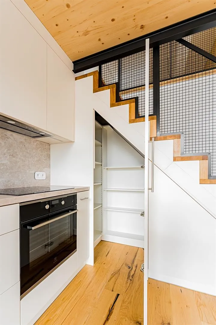 Vysoké stropy (4,75m), dřevěné podlahy, bezpolodrážkové interiérové dveře, sanita Laufen, zajímavé detaily a industriální prvky dotváří atmosféru tohoto atraktivního bydlení. Samozřejmostí jsou bezpečnostní vstupní dveře i chytrá domácnost. K dispozici je jedno parkovací stání v podzemních garážích v ceně nájmu.