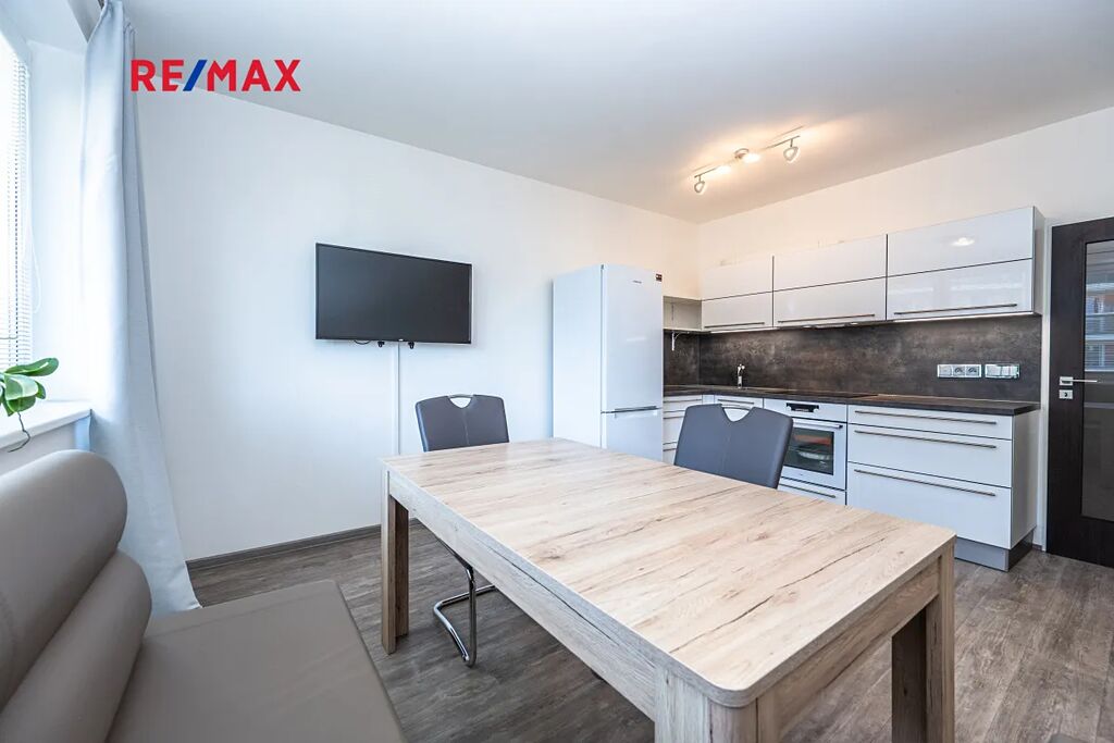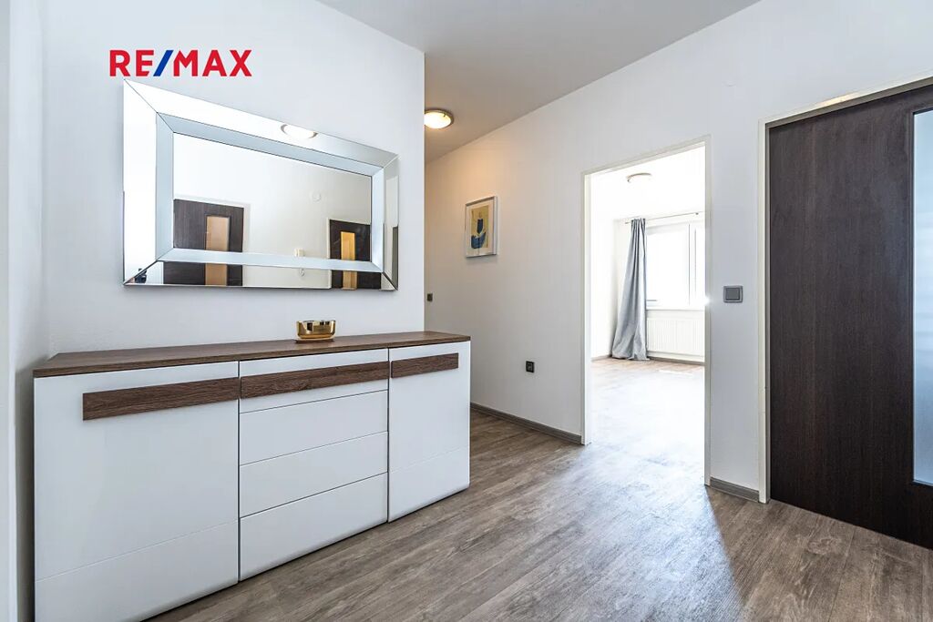 Byt prošel kompletní rekonstrukcí – nové podlahy, kuchyňská linka, koupelna, dveře.