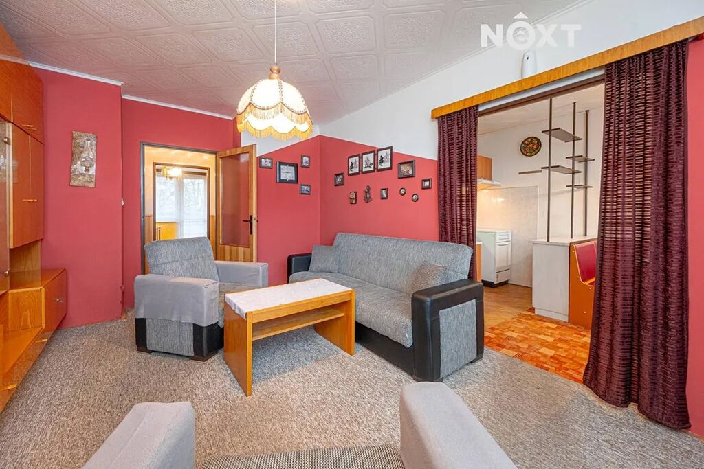 Dispozice bytu: vstupní chodba, koupelna, samostatné WC, obývací pokoj, kuchyně, ložnice se vstupem na lodžii 6,5m², pokoj. Byt má plastová okna směrovaná na východ a západ. K bytu náleží dva sklepy 1m² a 2m². Možnost parkování u domu.