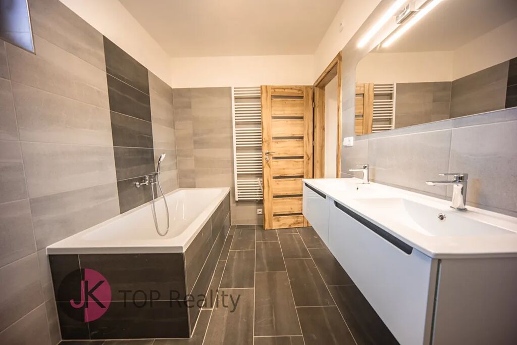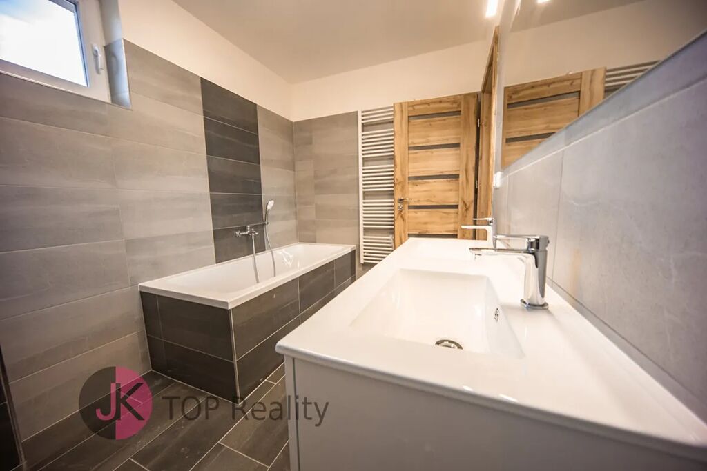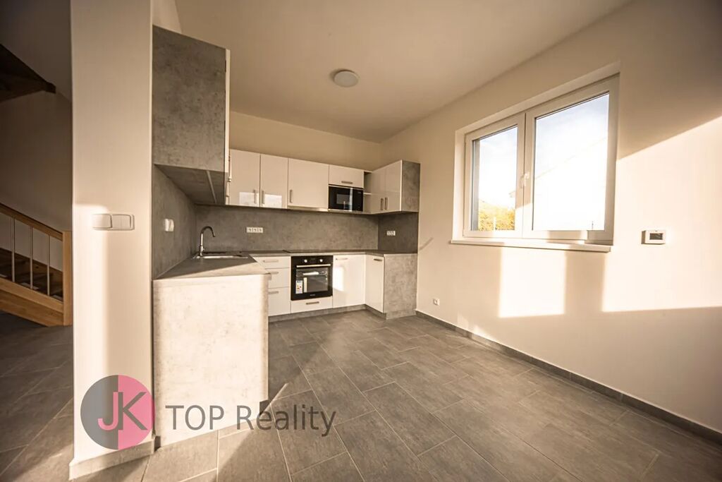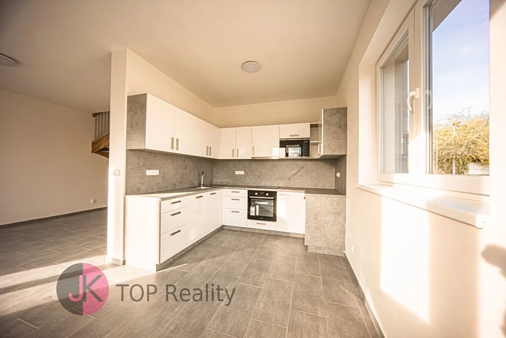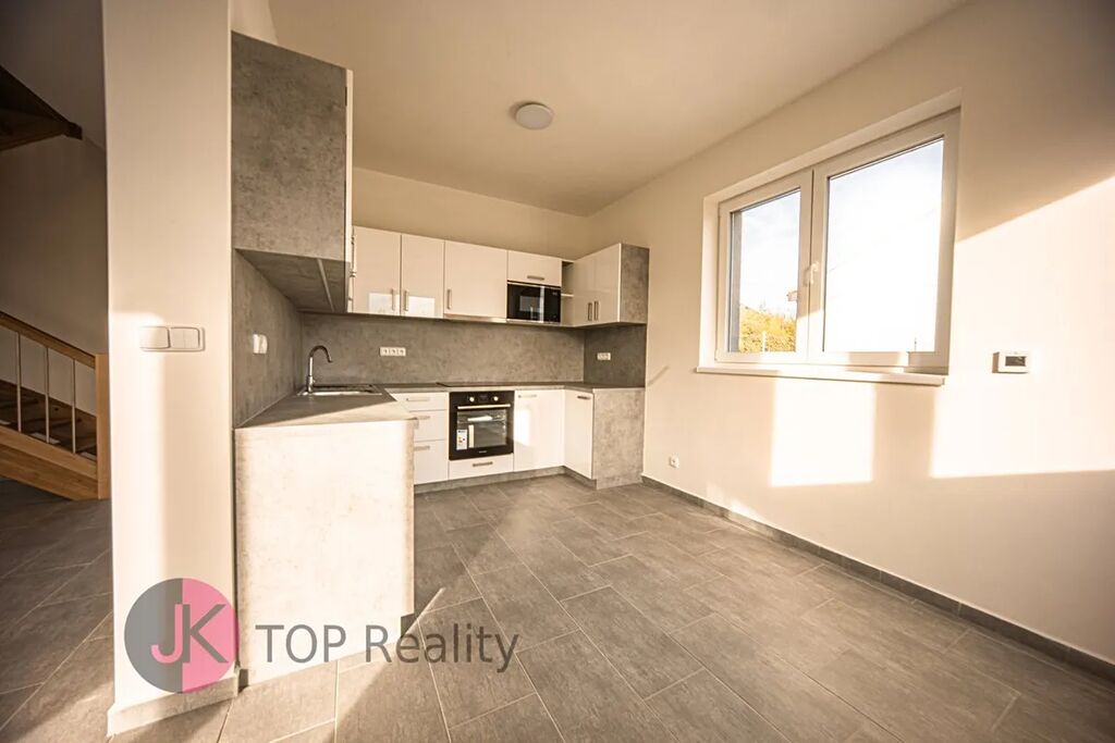 Bude zde nová kuchyňská linka na míru se sklokeramickou deskou a el. troubou, digestoří a myčkou na nádobí. Na podlaze bude vinyl a dlažba. V přízemí domu bude elektrické podlahové vytápění + krbová kamna. Půdní úložný prostor.