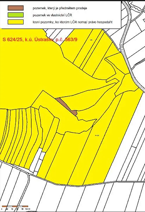 Jedná se o prodej lesního pozemku parc. č. 563/9 o výměře 1179 m2, úzkého tvaru, obklopeného pozemky jiných vlastníků. Část pozemku je bezlesí, na části pak roste několik borovic podrostlých trávou a buření.