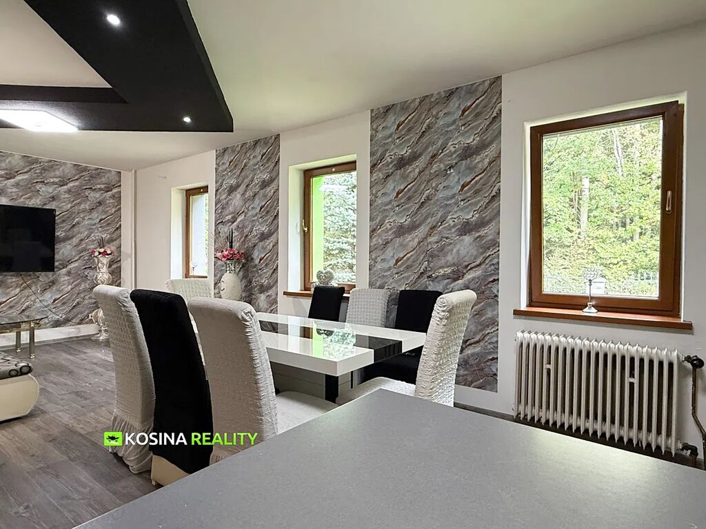 Nabízím k prodeji rodinný dům se zahradou a garáží. Jedná se o samostatně stojící rodinný dům. Mezi lety 2012 - 2014 byla provedená významná rekonstrukce domu, výměna oken za plastová, rozvod elektroinstalace, výměna kuchyňské linky, rekonstrukce koupelny, štukové omítky, výměna podlahových krytin, přípojka plynu a rozvod ústředního vytápění, výměna kotle a zateplení fasády. V prvním nadzemním podlaží jsou dva propojené pokoje s kuchyňským koutem, předsíň, koupelna a WC. Do obytného podkroví vede kameninové schodiště, kde se nachází tři pokoje a předsíň s výstupem na terasu. Vytápění domu je ústředním topením napojeným na plynový kotel a kombinovaným kotlem na tuhá paliva umístěným ve sklepě domu. Teplá užitková voda je ohřívaná plynovým bojlerem. Střecha domu je sedlová s krytinou z eternitových šablon. U domu je samostatně stojící garáž o výměře 22 m2, která má zazděná vjezdová vrata a nyní slouží jako letní dům (dvě fotky interieru s černým gaučem). Na zahradě u domu je také nově vystavěná montovaná garáž o výměře 55 m2 se třemi vraty. Dům je celý podsklepený, se třemi místnostmi, schody do prvního nadzemního podlaží a s výstupem do zahrady (výškově zároveň s terénem). Přístavba (vchod do domu, zádveří s terasou nad tím) podsklepená není. Dům je napojený na elektřinu, vodovod a plyn. Kanalizace je svedena do žumpy na vlastním pozemku. Součástí prodeje je i nová odpadní jímka, která je připravená na výměnu, v obci je plánovaná kanalizace. U domu vede asfaltová komunikace. V okolí domu je klidné vesnické prostředí na kraji vesnice u lesa. Přes zahradu teče malý potok. Průkaz energetické náročnosti budovy třída PENB „C“. Pro více informací mě kontaktujte.