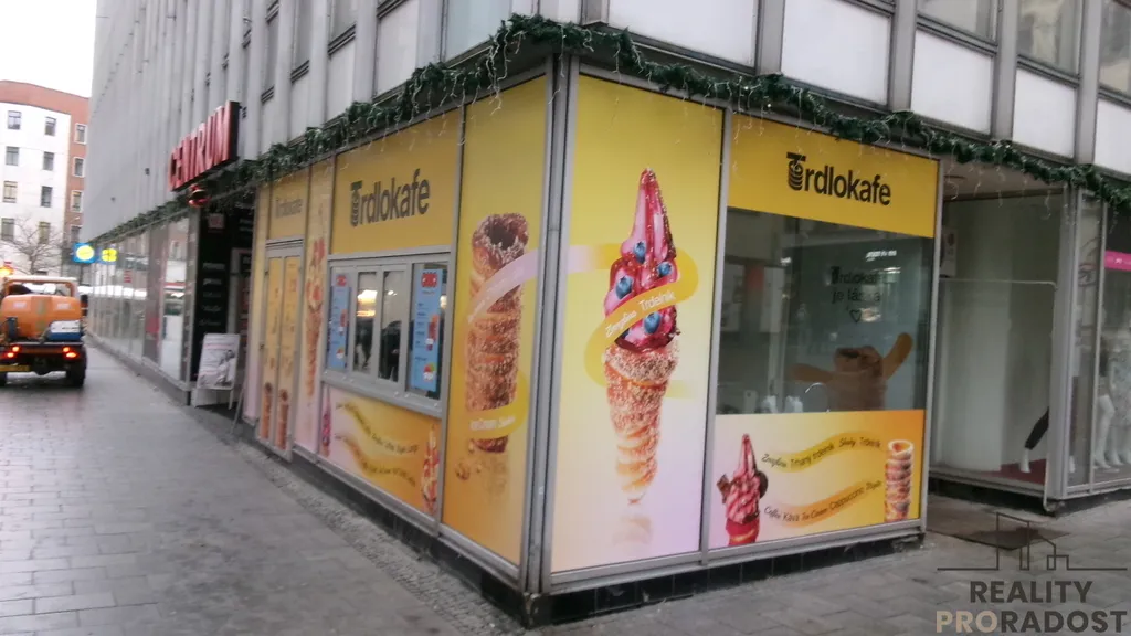 Se souhlasem majitele Vám nabízíme k pronájmu prodejní okénko na ul. Kobližná v Brně. Prostor o výměře 14m2 je na velmi frekventovaném místě v těsné blízkosti Malinovského nám. užívaný nyní jako prodejna Trdlokafe. Prostory tvoří jednak prodejní jednotka s vlastním vstupem z ulice Kobližná o rozloze 14,00 m2 s výkladci do ulice Kobližná a ulice Pohořelec. Dále je součástí pronajímaných prostor v 1. PP nově vybudované vlastní sociální zázemí o rozloze cca 4 m2 a sklad v 1. PP o rozloze 5,44 m2. Na prodejně je zavedená voda, není zde vzduchotechnika. Celková rozloha pronajímaných prostor je tedy 23,44 m2. Podrobnosti v RK, volné ihned.