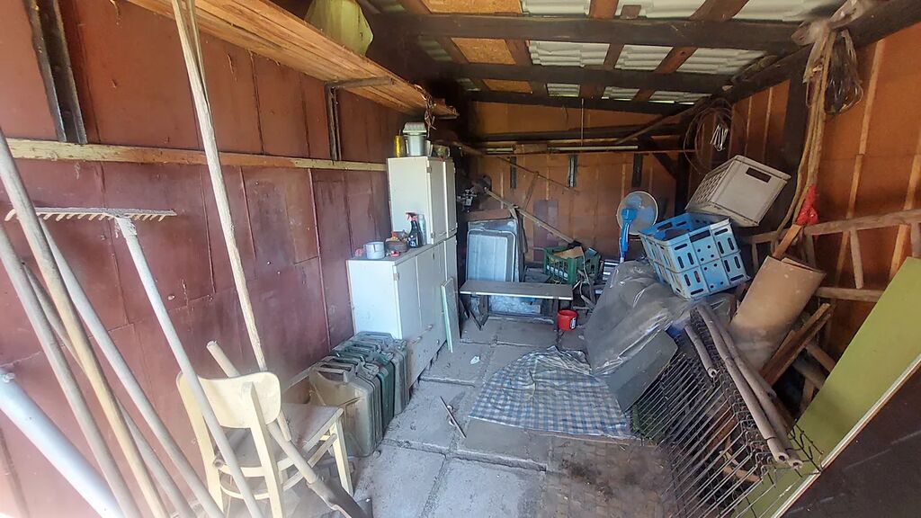 Ve spodní části zahrady je domek na nářadí + nějaké nářadí k dispozici.