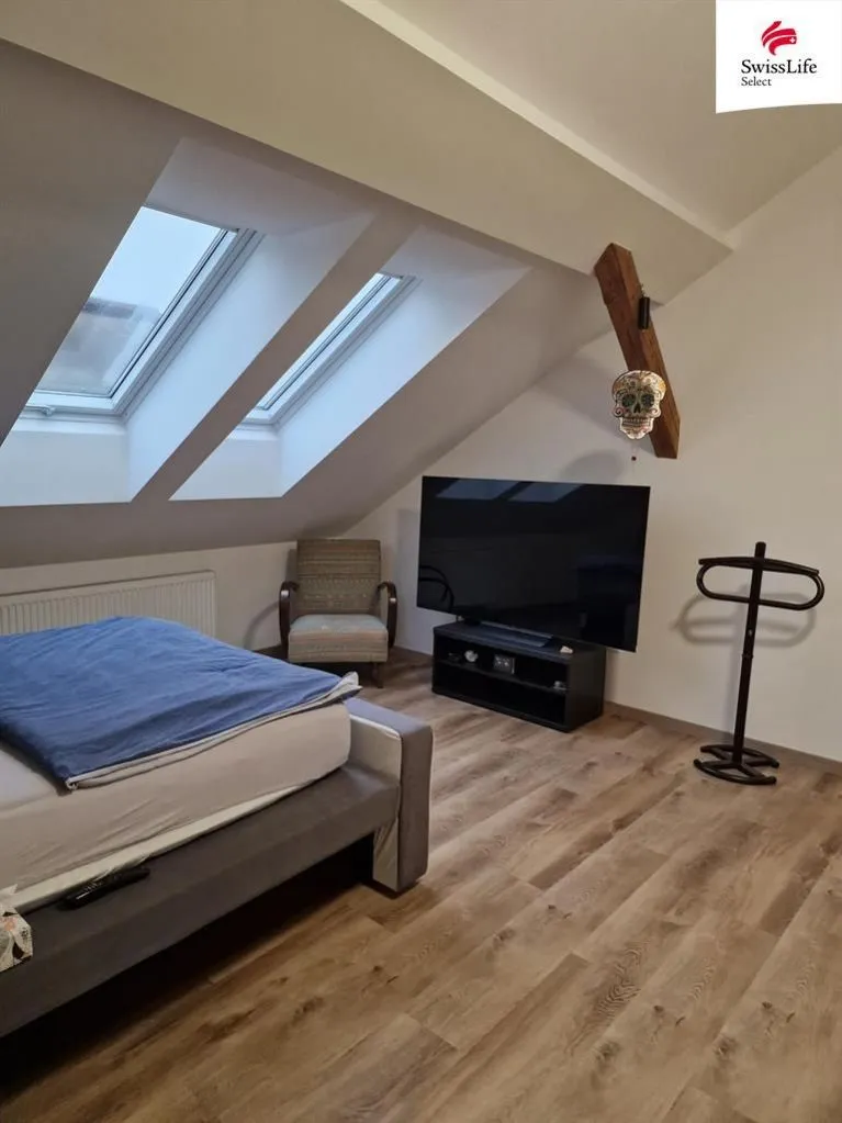 Nabízíme k dlouhodobému pronájmu krásný půdní byt 1+kk o výměře 50 m, který se nachází ve 3.NP. Byt se skládá ze vstupní chodby, prostorného obývacího prostoru s kuchyňským koutem, samostatného pokoje využitelného jako ložnice, šatny, koupelny se sprchovým koutem a WC a technické místnosti.