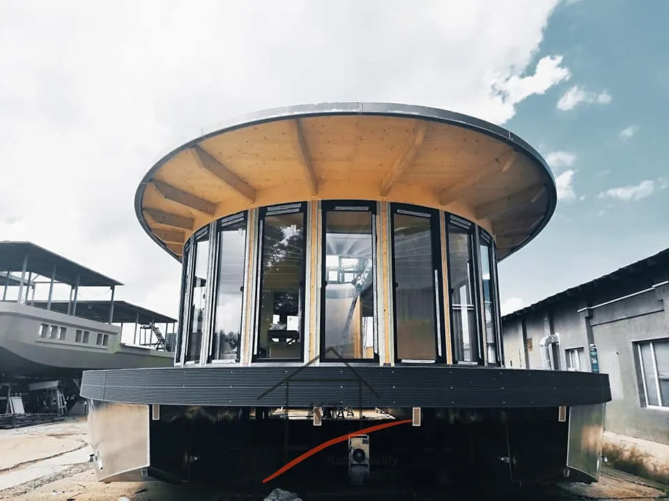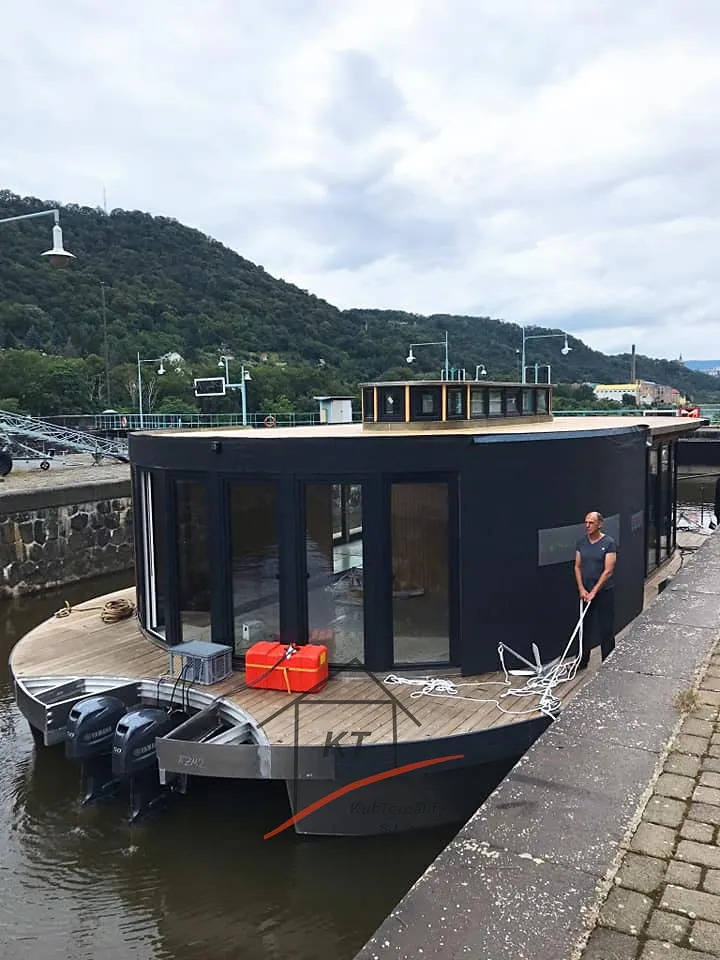 Nabízíme vám kompletně zařízený Houseboat o výměře 140 m2, který poskytuje pocit bydlení na vodě pro rekreační účely. Výroba probíhá v loděnici pod dohledem mezinárodně uznávaných kontrolních institucí (Lloyd's Register of Shipping, Germanische Lloyd a Bureau Veritas). Ocelové části jsou buď z nerezové oceli AISI316, nebo žárově pozinkované oceli. Stavby jsou navrženy v souladu s místními povětrnostními, vodními a zimními vlivy. Nejprve je stavba postavena ve výrobní hale Loděnice Barkmet a pak následně dopravena do místa kotviště. Základní výbava plovoucího domu obsahuje hlavní motor (Allpa, Vetus), dokormidlovací zařízení, kotva a kotevní systémy (dalby), nádrže - pitná voda, palivová a fekální nádrž a balastní nádrže (vyvážení trupu). Plovoucí dům je vybaven nejnovějšími technologiemi pro zajištění energetické účinnosti. Inteligentní vybavení systému pro úsporu energie a technologií umožňuje dosáhnout až LEED hodnocení. Energeticky/efektivní izolace a okna s trojsklem jsou standardní řešení. Dům je vybaven slunečními kolektory, které vyrábí teplou vodu pro domácnost, ve slunném období nabízí velmi nízkou spotřebou energie. O vytápění domu se vám postarají ekonomické sálavé infra panely s nastavitelným termostatem. Všechny tyto systémy a stavební materiály pomáhají šetřit Vaše peníze i životní prostředí v dlouhodobém horizontu. Rozměry - délka - 17m, šířka- 8,2m (ocel, povrchová úprava lodní barvou HEMPL). Technické parametry a vybavení: naftový motor Solé Diesel Allpa 35 HP, Elektro 220W, přední dokormidlovací zařízení, kotevní elektrický naviják, WC s lodním panelem (lodní fekální nádrž), sprcha, boiler, cisterna na vodu 1000litrů (užitková voda a odpadní), balastní nádrže (vyvážení trupu)Vybavení - lednice, sporák indukční, mikrovlnka, alarmový systém střežení, moderní led osvětlení, elektrické vyhřívané podlahy+ vybasto (diesel. horko-vzdušní topení). Houseboat není závislý na elektro - břehové přípojce kvůli solárním panelům - velmi ekonomická spotřeba- funkčnost pří úplném vypnutí elektřiny (alarm zařízení, lednice, boiler, osvětlení ). Energeticky/efektivní izolace a okna s trojsklem jsou standardní řešení. Dům vybaven slunečními kolektory, které vyrábí teplotu vody pro domácnost, ve slunném období nabízí velmi nízkou spotřebu energie. O vytápění domu se vám postarají ekonomické sálavé infra panely s nastavitelným termostatem. Všechny tyto systémy a stavební materiály pomáhají šetřit Vaše peníze i životní prostředí v dlouhodobém horizontu. 4 místa na spaní, palubní terasa a patrová terasa s další možnosti využiti - vířivka, terasa na opalování, grilování. Při osobní prohlídce a i projížďce na vodě nejlépe posoudíte, zda je tento houseboat vhodný právě pro Vás. Nabízíme vám možnost financování naším smluvním partnerem. Pro více informací nebo sjednání prohlídky kontaktujte certifikovaného realitního makléře.