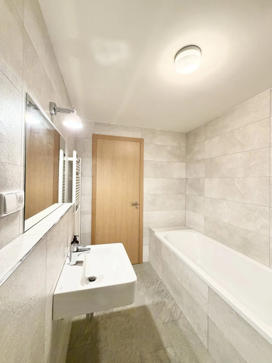 Byt se nabízí částečně vybavený. Kuchyň je vybavena lednicí, mrazákem, myčkou, elektrickou troubou, varnou deskou a digestoří. Obývací část i druhý pokoj jsou nezařízené. V koupelně je vana, umyvadlo, topný žebřík a toaleta. Druhá toaleta je umístěna samostatně.