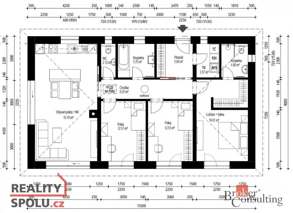 Dům o dispozici 4+kk s podlahovou plochou 107 m² je navržen tak, aby poskytoval maximální komfort pro rodinu. Dominantou je prostorný obývací pokoj s přímým vstupem na terasu o ploše 45 m² a dále na zahradu orientovanou do soukromí za domem. Velkou výhodou jsou také dvě koupelny, které výrazně zvyšují praktičnost domu.