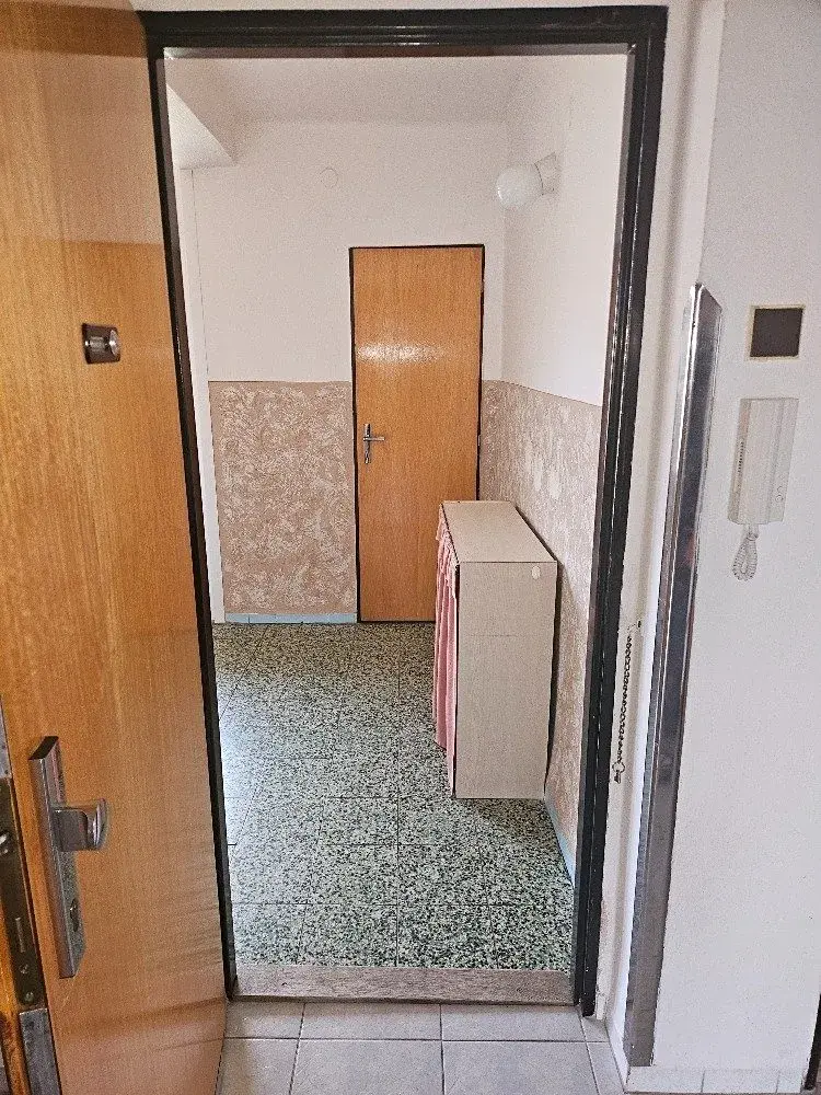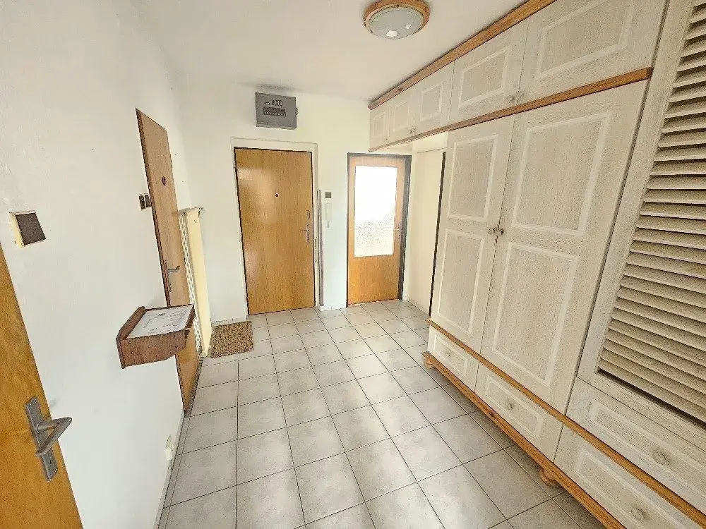 Po vstupu do bytu vejdeme do prostorné předsíně s velkou vestavnou skříní a v ní umístěn plynový kotel. Z předsíně vstupujeme do kuchně a jednotlivých pokojů, koupelny a toalety. Z kuchyně taktéž vstupujeme do obývacího pokoje.