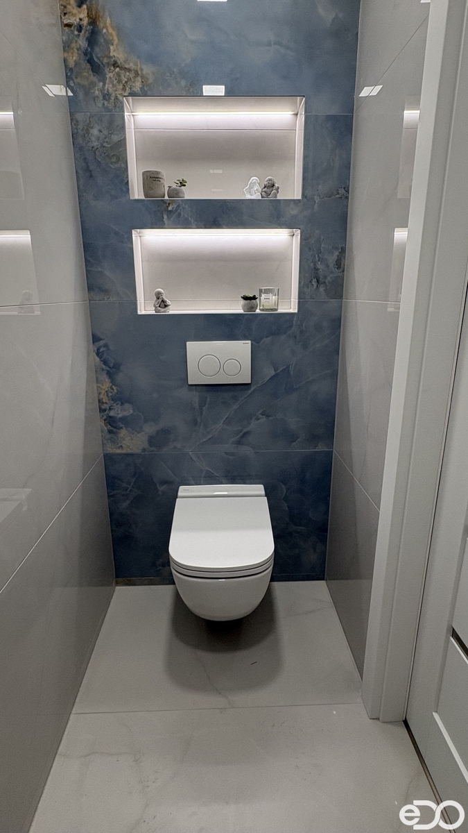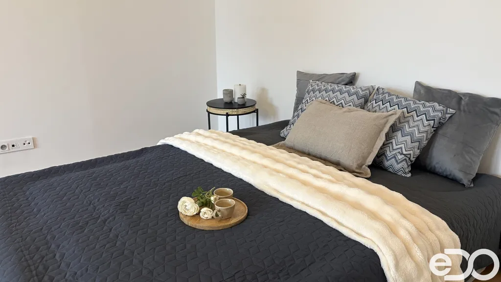 Součástí dispozice jsou dva samostatné pokoje, oba světlé a prostorné. Každý má vlastní lodžii, která rozšiřuje obytnou část. Velkým plusem je také komora v bytě, kterou lze využít jako šatnu. Koupelna je nově zrekonstruovaná s velkoformátovým obkladem, sprchovým koutem a podsvíceným kulatým zrcadlem. Samostatné WC má připravené místo na pračku a ladí s designem koupelny.