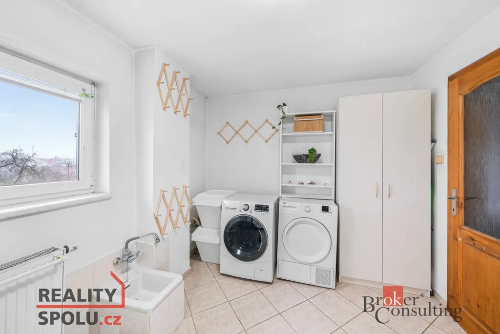 Technické zázemí doplňuje prostorná garáž o velikosti 35 m² a sklep o výměře 45 m², který oceníte pro úložné prostory nebo hobby využití. V podkroví je navíc možnost vybudování půdní vestavby a získat tak další obytné místnosti.