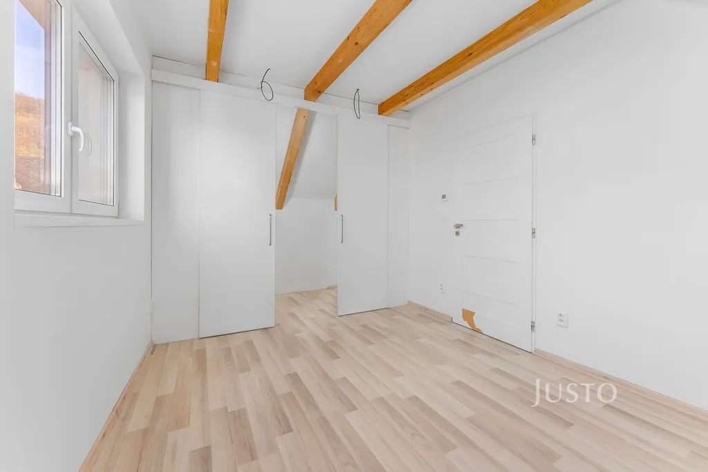 - betonovým schodištěm se dostaneme do 2.NP kde je koupelna s vanou a WC a dva pokoje, užitná plocha 2.NP je 32,71 m².