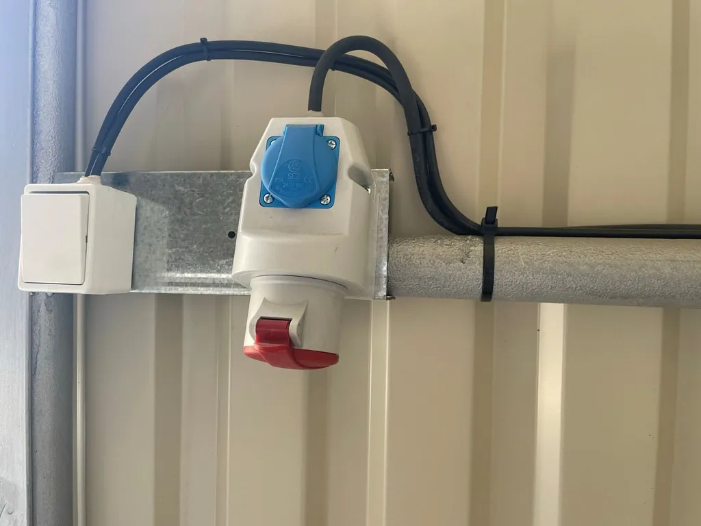 V hale je rozvod elektřiny 220/380V osazen podružný elektroměr + osvětlení je zářivkami.