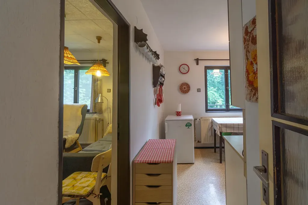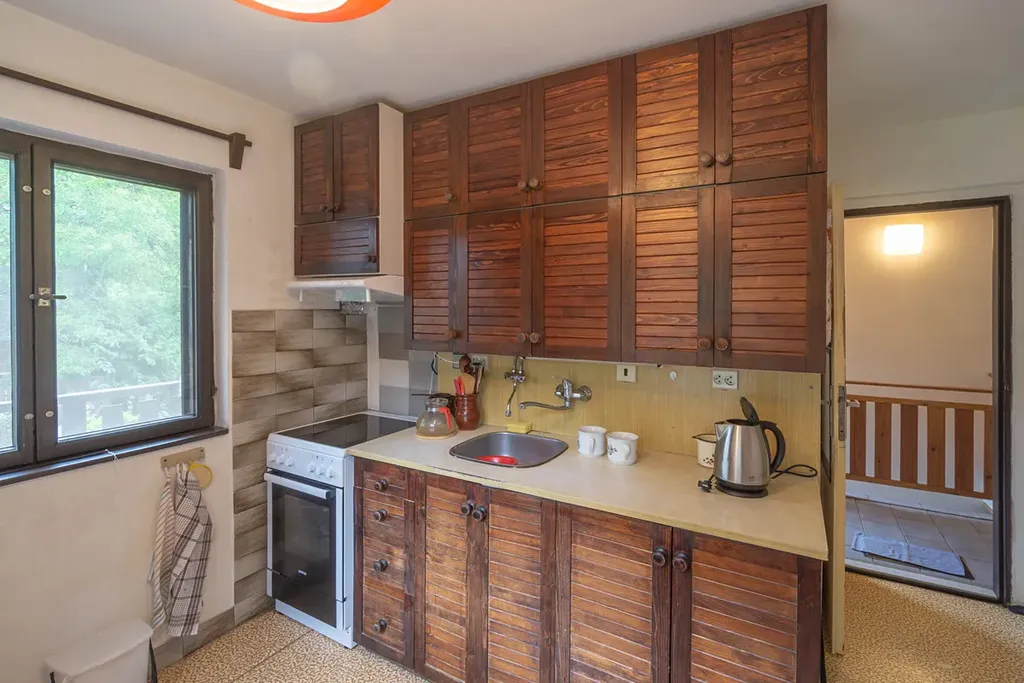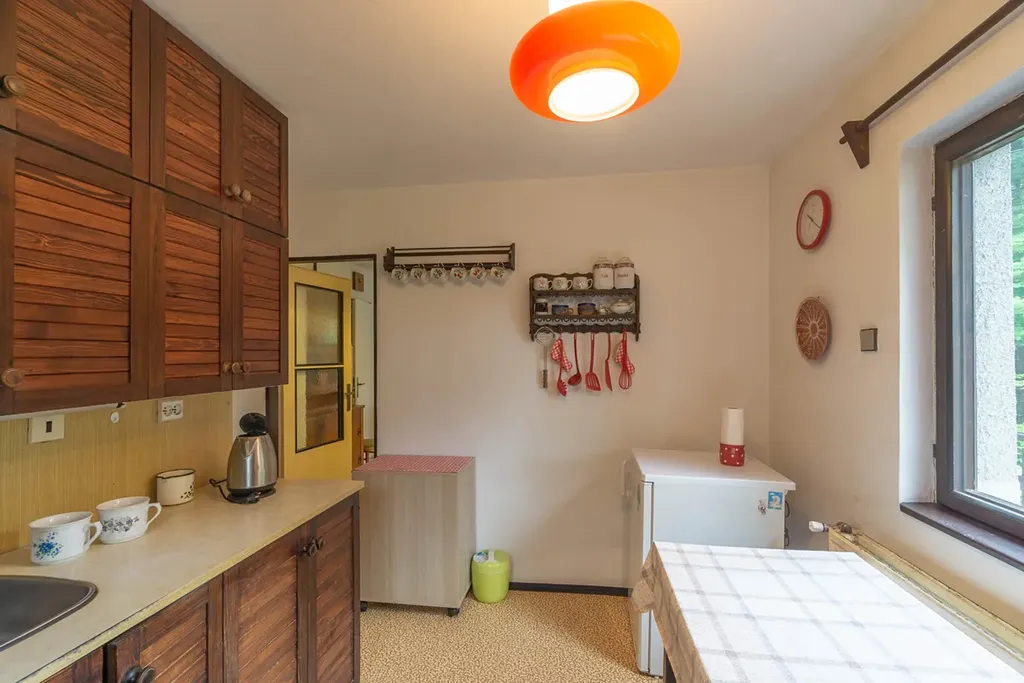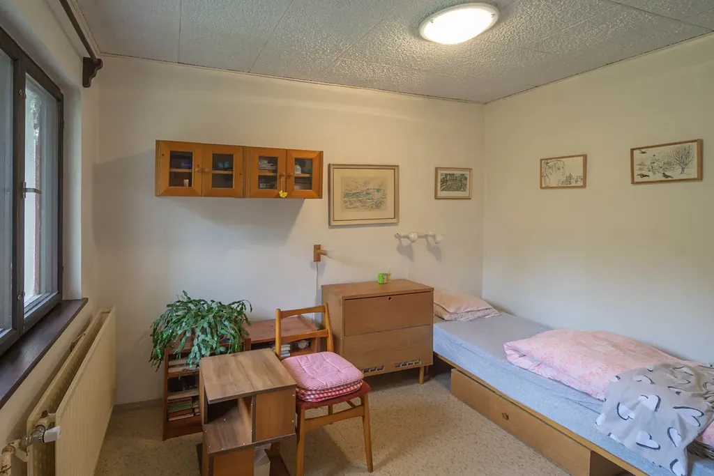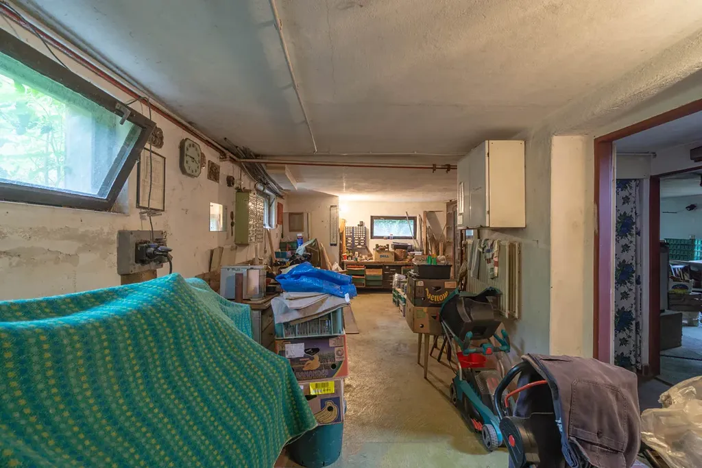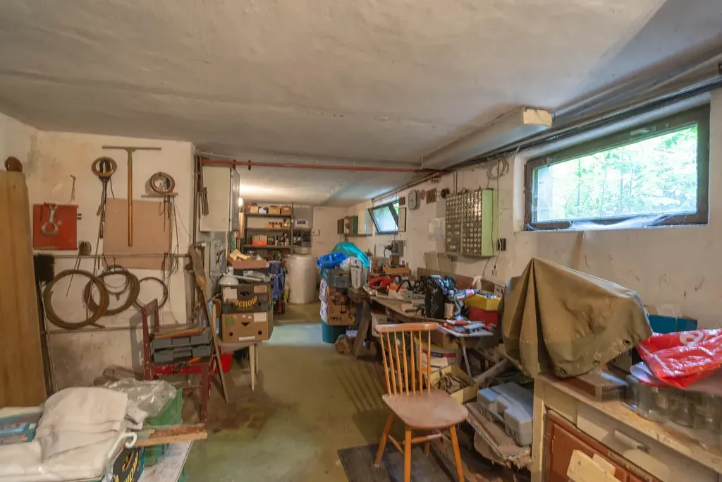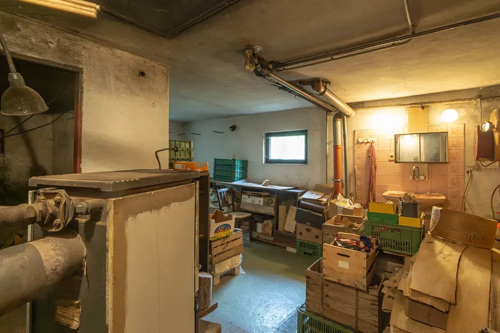 • Suterén (1.PP): chodba se schodištěm (4,9 m²), kotelna se skladem na palivo (24 m²), místnost na uskladnění zavařenin (11 m²), dílna se soustruhem (24 m²).