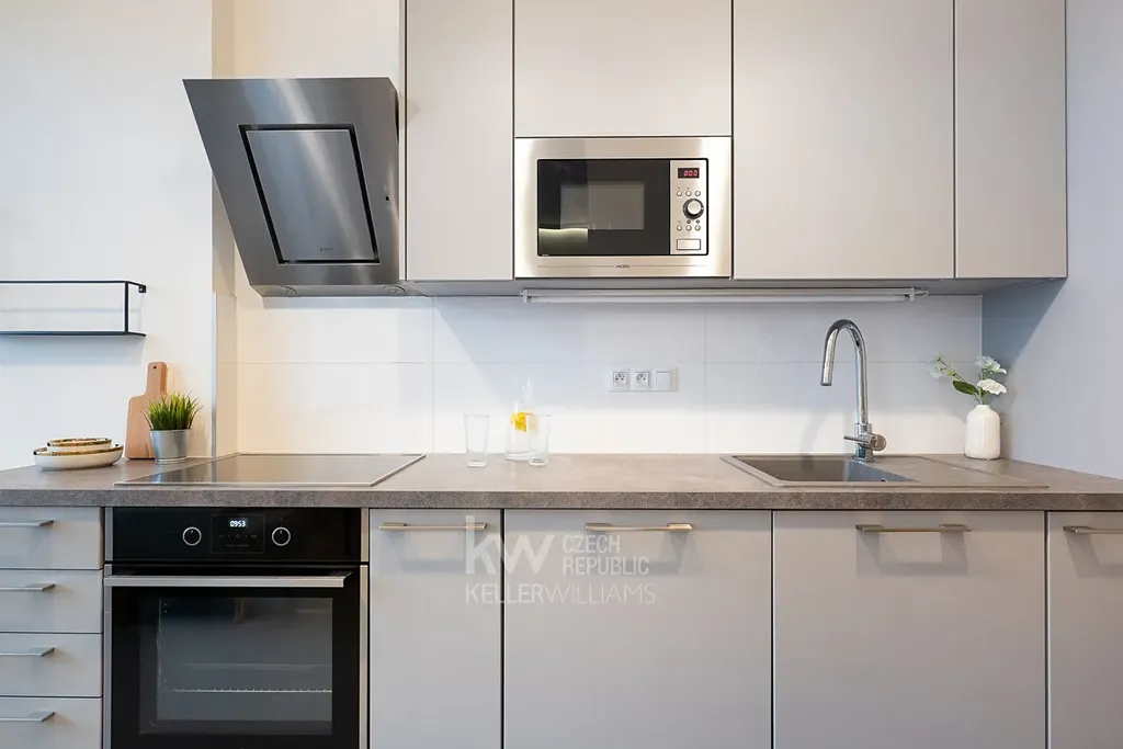 Nabízím k pronájmu světlý a kvalitně zrekonstruovaný byt 2+kk o výměře 66 m², který se nachází ve 3. patře domu s výtahem v Jičínské ulici, jen pár kroků od stanice metra Flora a obchodního centra Atrium Flora. Byt prošel kompletní rekonstrukcí před pěti lety a působí moderně, čistě a velmi vzdušně. Dispozice tvoří prostorný obývací pokoj s kuchyní, ložnice se samostatnou šatnou a velká koupelna se sprchovým koutem a WC. Byt se pronajímá kompletně zařízený.