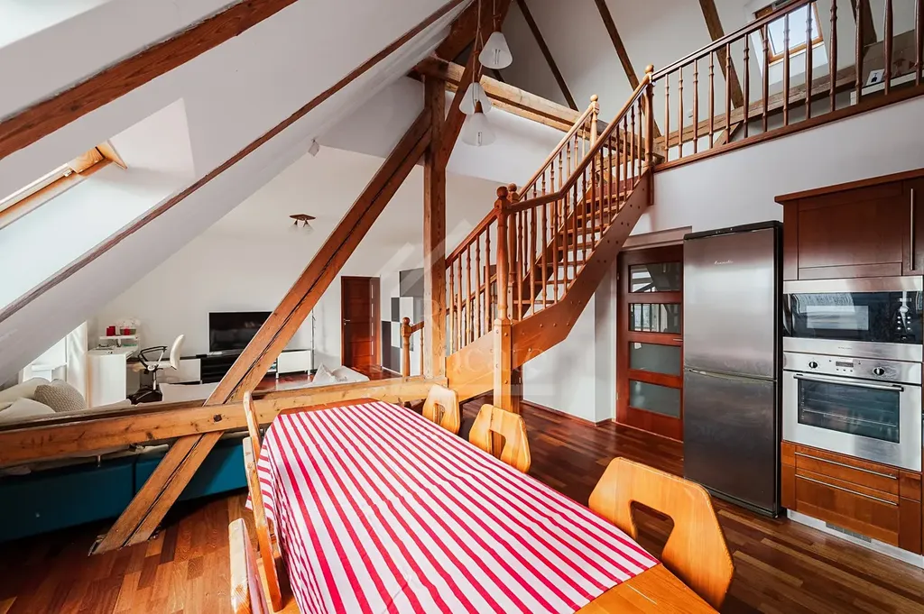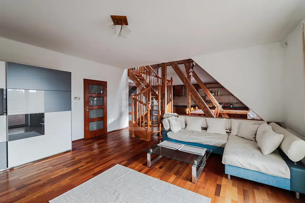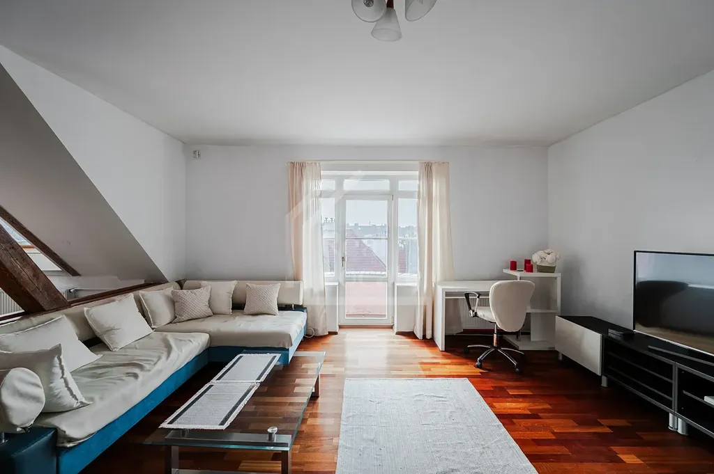 Nabízíme k pronájmu nadstandartní a světlý byt 2kk + balkon + galerie, ve vilové zástavbě v ulici Hradešínská, Praha 10 - Vinohrady. Tento jedinečný, zařízený byt cca (114m² + 4m²) se nachází v třetím patře vilového domu (celkem 3 byty + kancelářské prostory) činžovního domu se společnou krásnou zahradou a 1 parkovacím místem. Byt se skládá s prostorného obývacího pokoje s plně zařízeným kuchyňským koutem a vstupem na balkón. Dále je v bytě atypicky řešená ložnice pro až 4 osoby a také galerie nad obývacím pokojem, která lze využít jako pracovna nebo jako pokoj pro návštěvy. Koupelna s rohovou vanou a samostatná toaleta je přístupná přímo z navazující předsíně. Byt je klimatizovaný a má krásné dřevěné podlahy. Velkou výhodou tohoto bytu je možnost využívat společnou zahradu a vyhrazené parkovací stání. Reprezentativní bydlení v centru města jen pár minut od veškerého občanského vyžití.