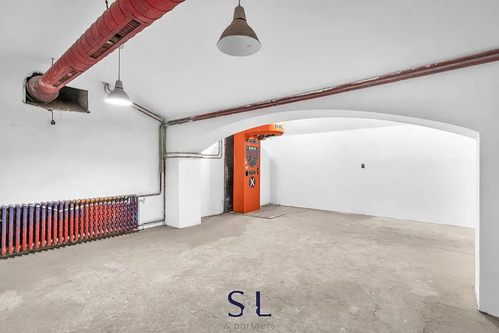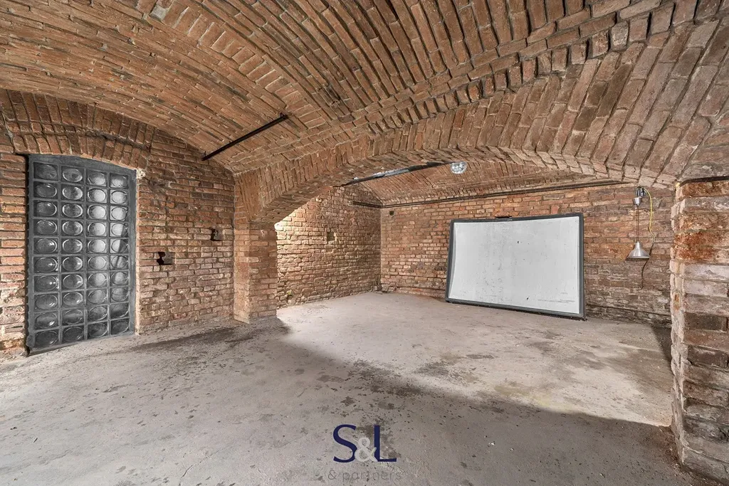- Suterén (1. PP): hlavní sál s klenutými stropy, ideální pro klubový prostor, menší sál vhodný pro další zázemí nebo oddělenou místnost, sklady, technická místnost s kotelnou a další prostory pro provozní zázemí.