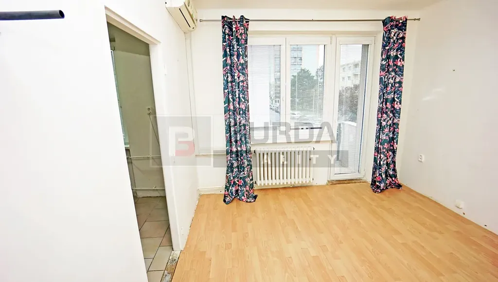V bytě jsou plastová okna s parapety, se žaluziemi a garnýžemi na záclony.