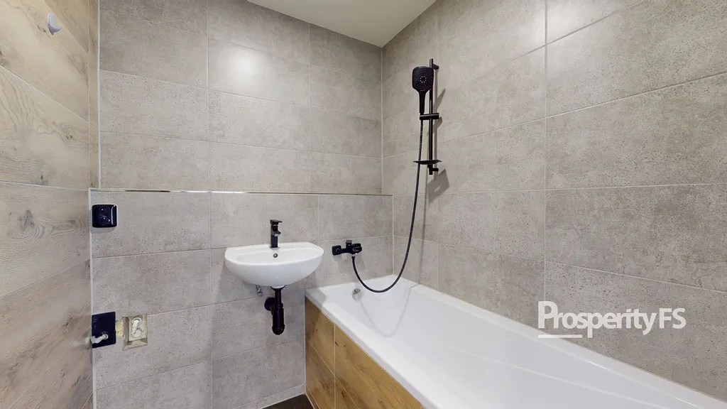 Byt o velikosti 41 m² se nachází v 8. podlaží panelového domu se dvěma výtahy. Má plastová okna a kuchyňskou linku s indukční varnou deskou a elektrickou troubou. Koupelna je vybavena vanou, umyvadlem, toaletou a je zde připravené místo na pračku. Vytápění i ohřev vody jsou zajištěny dálkově.