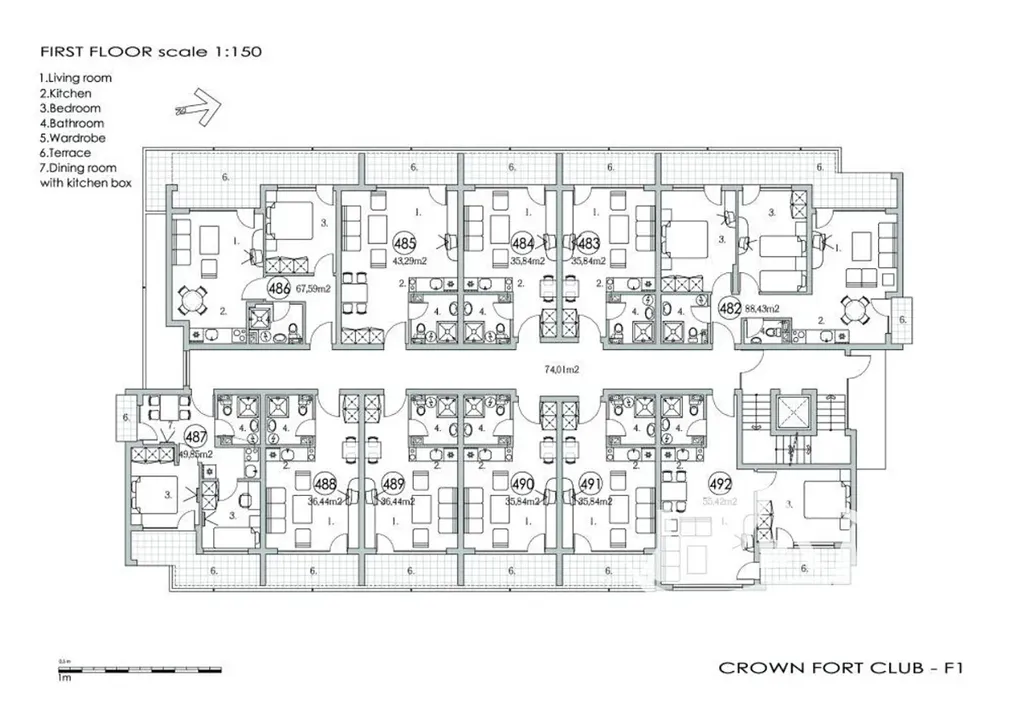 Apartmán 2+kk o ploše 63,73 m² se nachází v prvním podlaží a nabízí útulný prostor vhodný pro rekreaci, celoroční bydlení i investici. Výhled na bazén dodává klid a atmosféru letního resortu i v běžných dnech. Fotografie jsou pouze ilustrační, finální podobu si můžete uzpůsobit podle vlastního vkusu.